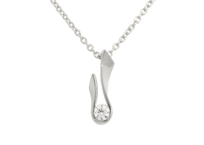 Flame Pendant with Round Diamond, White Gold & Platinum