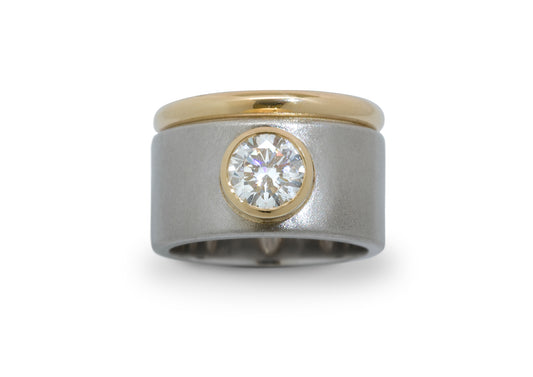 Signature Asymmetric Wide Ring, White Gold & Platinum