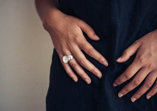 JW23 Cabochon Gemstone Ring, White Gold & Platinum