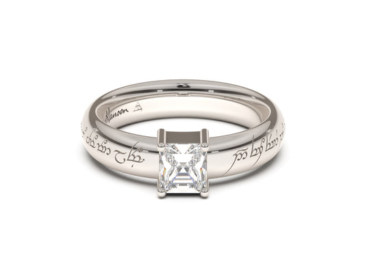 Princess Classic Elvish Engagement Ring, White Gold & Platinum