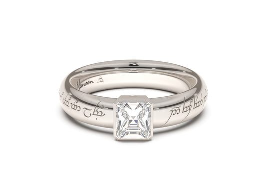 Emerald Cut Classic Elvish Engagement Ring, White Gold & Platinum