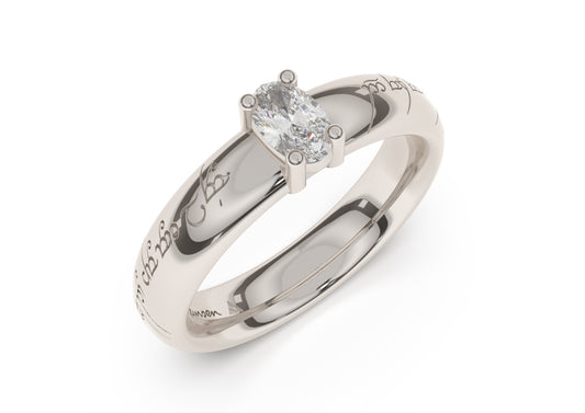 Oval Elegant Elvish Engagement Ring, White Gold & Platinum
