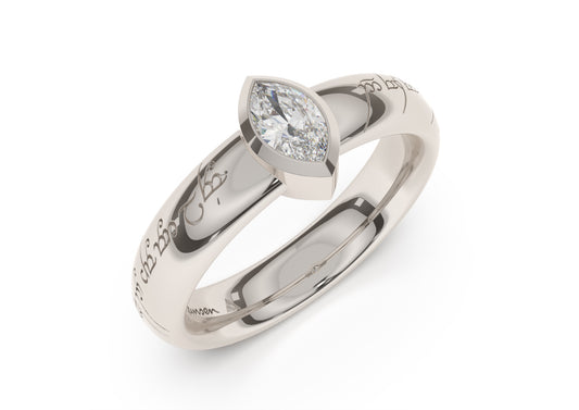 Marquise Modern Elvish Engagement Ring, White Gold & Platinum