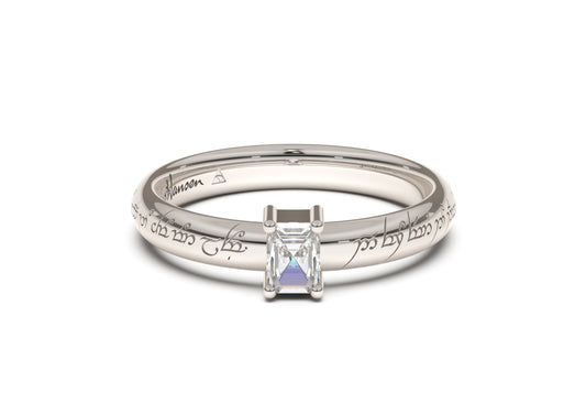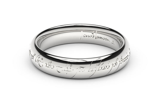The Sindarin writing style shown above follows Tolkien's linguistic rules for authentic transliteration. This is the same Elvish language variant used for the inscription on the One Ring itself, making it the perfect choice for creating meaningful engravings for wedding bands and custom jewelry.