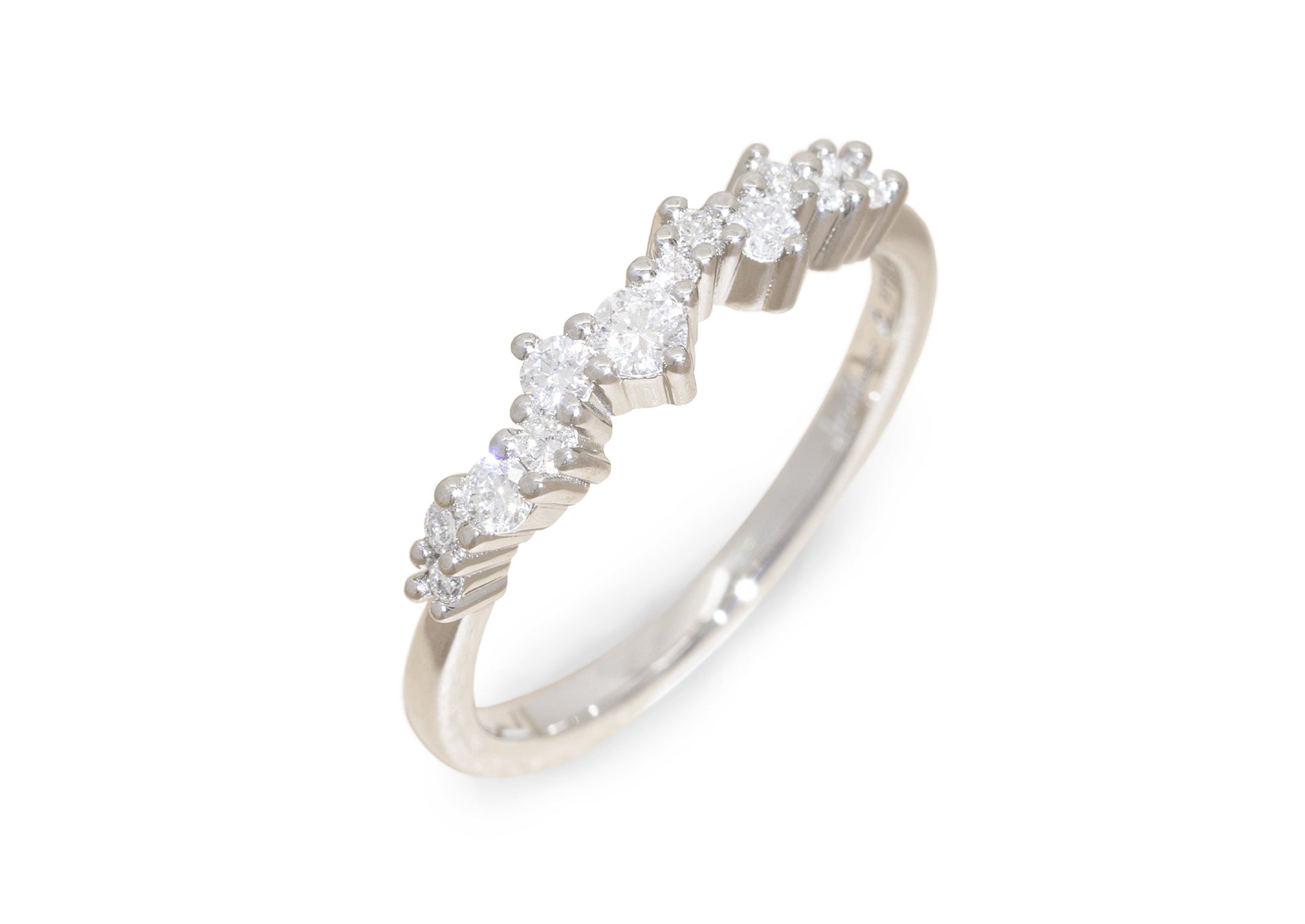 Artfully crafted in platinum, this engagement ring features twelve round white diamonds precisely claw-set to capture maximum brilliance. Designed using CAD technology, the arrangement of these precious stones creates a celestial-inspired silhouette—a refined constellation of diamonds that encircles the finger as a symbol of love.