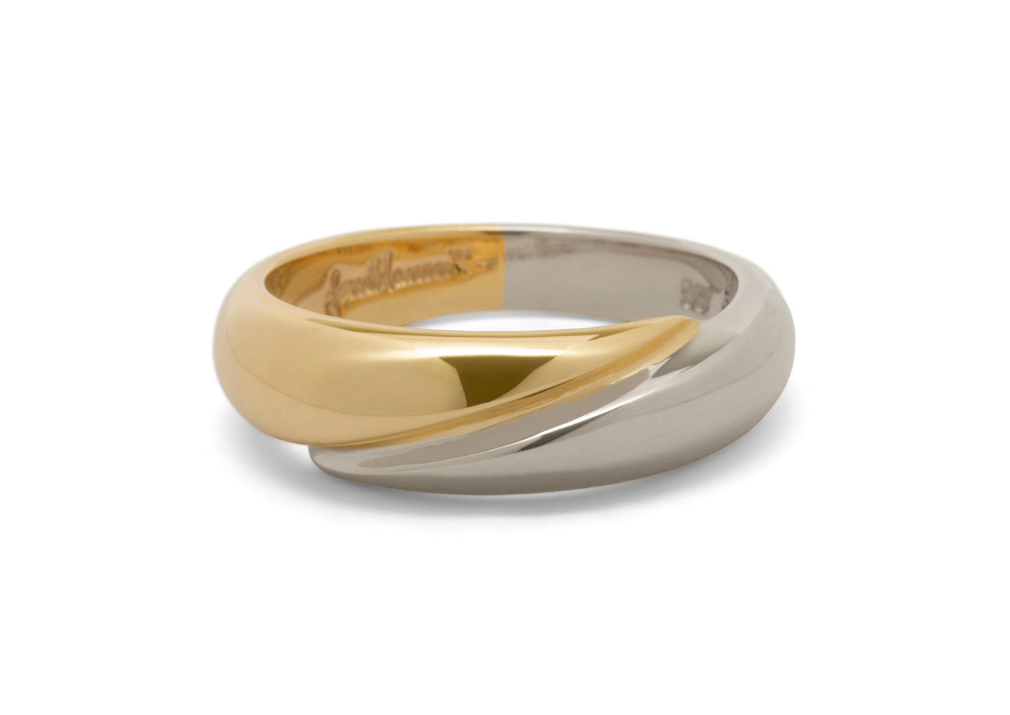 JW1 Domed Bitone Ring, Yellow & White Gold