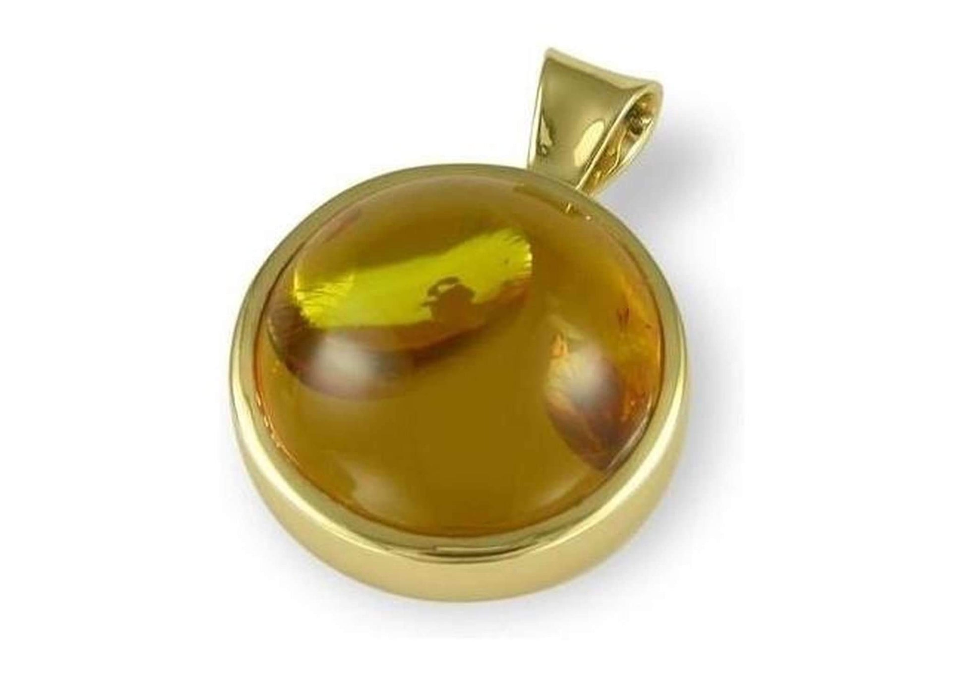 This Pendant has been made in Yellow Gold and set with a 20mm round cabochon cut Amber.