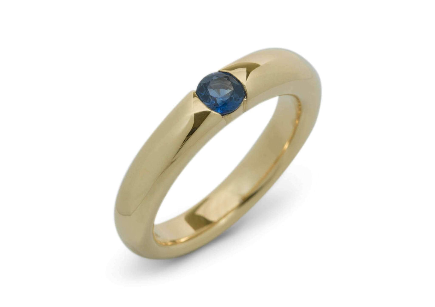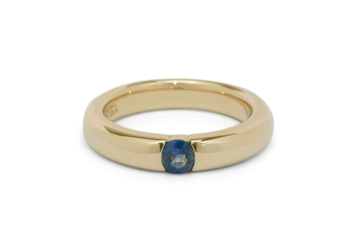 Adorn your hand with this classy yellow gold dress ring, set with a 5mm blue Sapphire. Understated and elegant, this contemporary dress ring speaks of quiet sophistication and taste. This ring suits young and old, and while perfect with blue, the ring suits any outfit for any occasion.