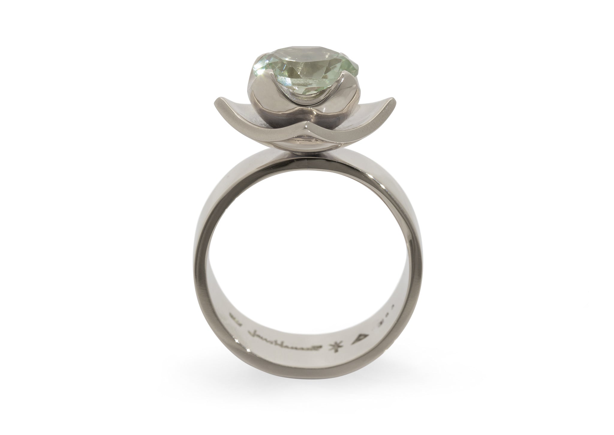 The double-cup, almost petal-like setting of the flower ring is an example of Jens pushing the traditional boundaries of how to set faceted stones.