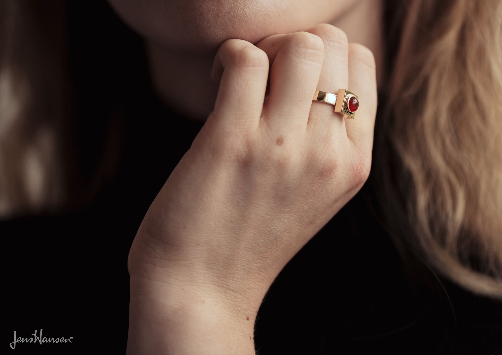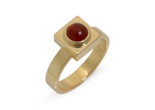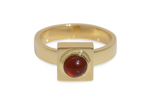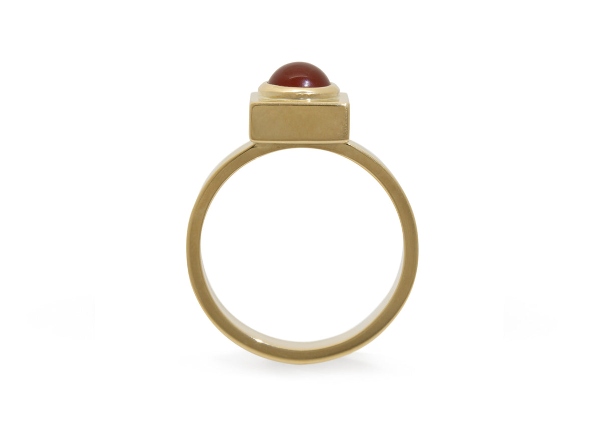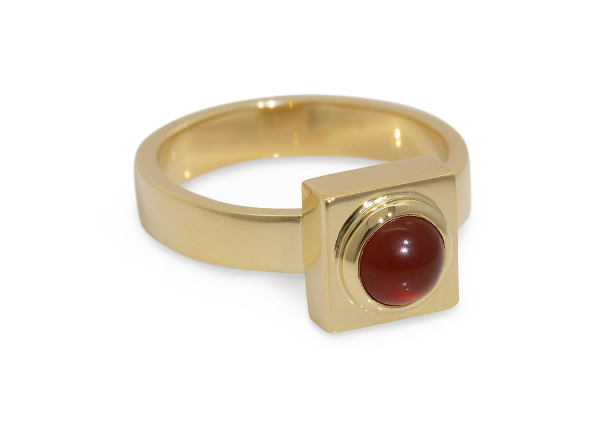Set with a classic round cabochon cut gem offset with contrasting square geometry, this ring embodies the characteristic Scandinavian aesthetic that was prevalent through Jen's work in the 60's and 70's. The word 'Torv' in Danish translates to 'Square', a reference to the architecture simplicity of modernist design, as well as the social focal point of a city - 'The Square'.