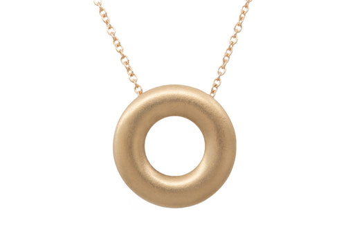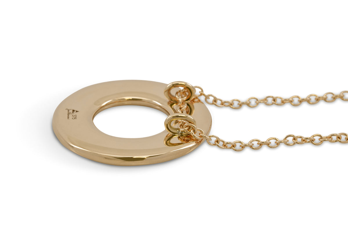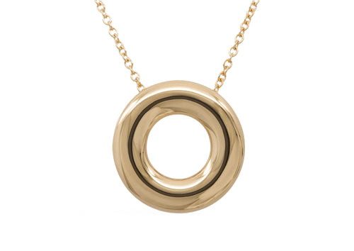 Made in solid yellow gold the circle pendant has double hidden bales and is available with a polished or satin finish. It’s perfect for everyday use. Just choose the chain length that fits your personal style.