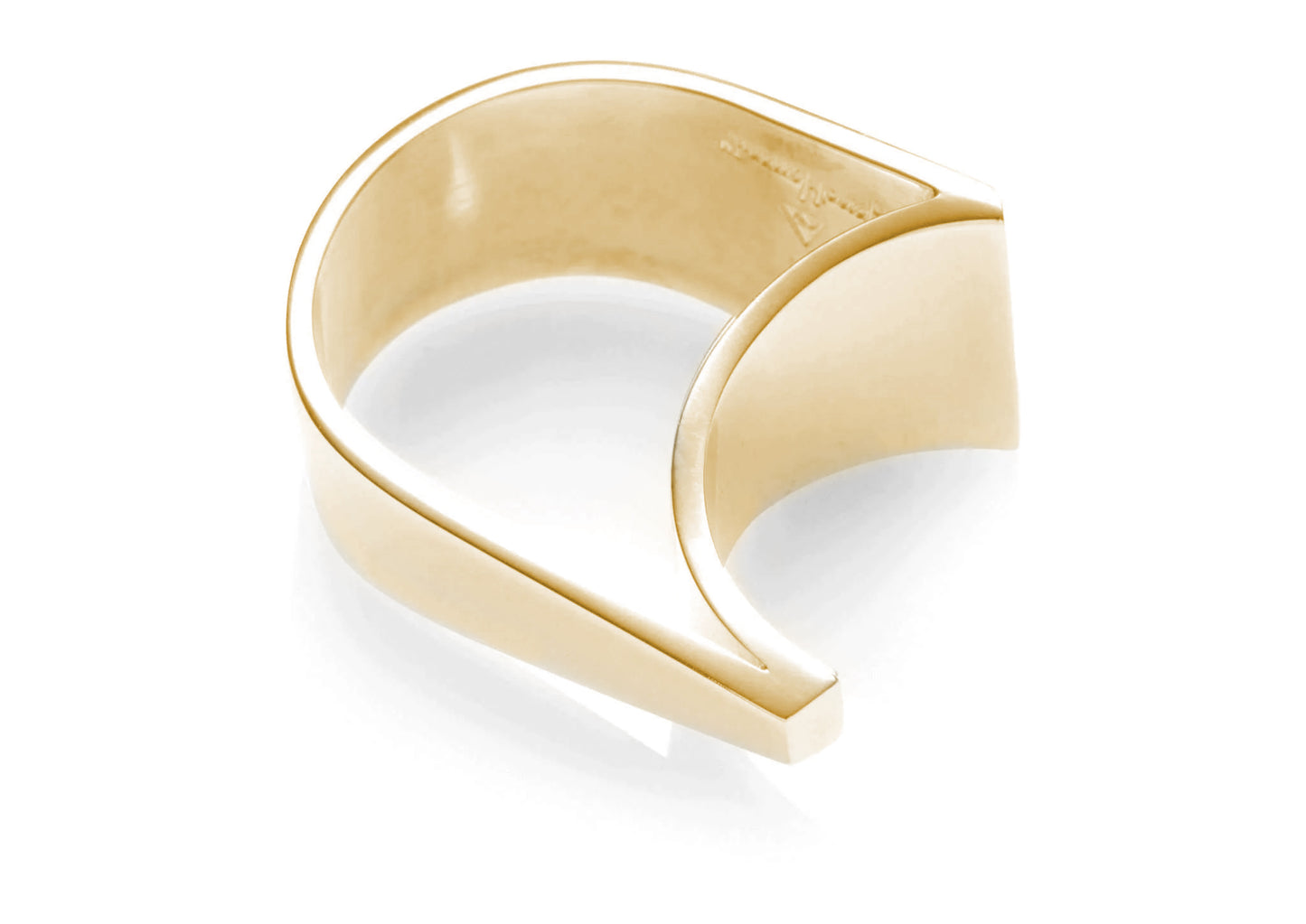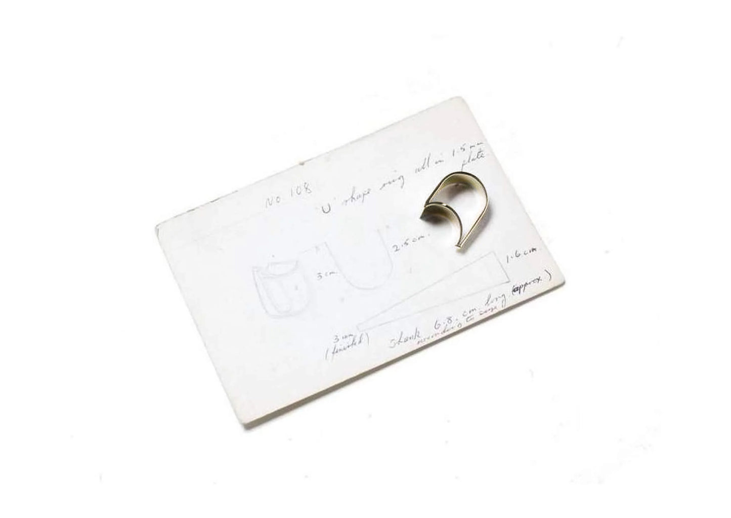 Jens often experimented with asymmetrical shapes - challenging the rules of balance in design. This ring beautifully illustrates sculptural asymmetry, also seen in Jens' large-scale sculptural work, inspired by sculptors Hepworth, Moore, Arp and Brancusi.