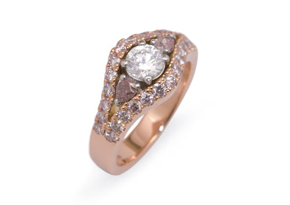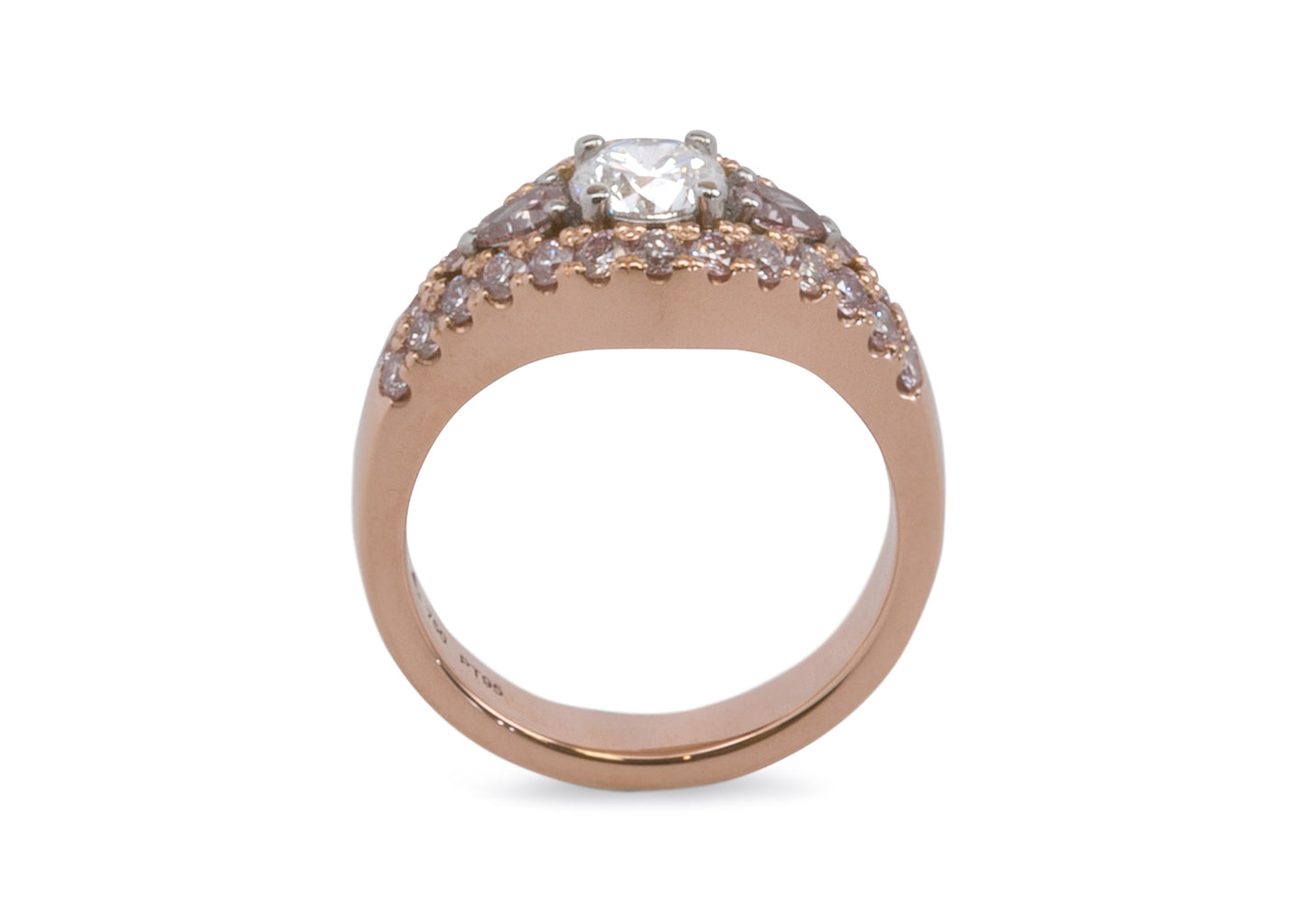 Custom Pink & White Diamond Ring, Red Gold & Platinum