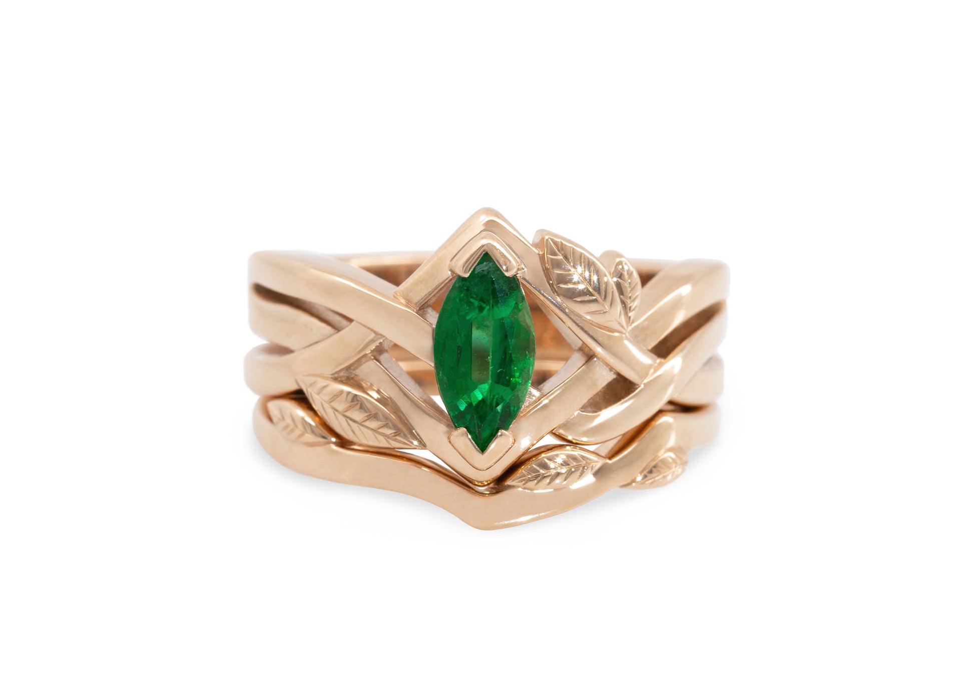 This delicate woodland band features three hand engraved leaves and perfectly accompanies our Marquise Elvish Woodland Ring.