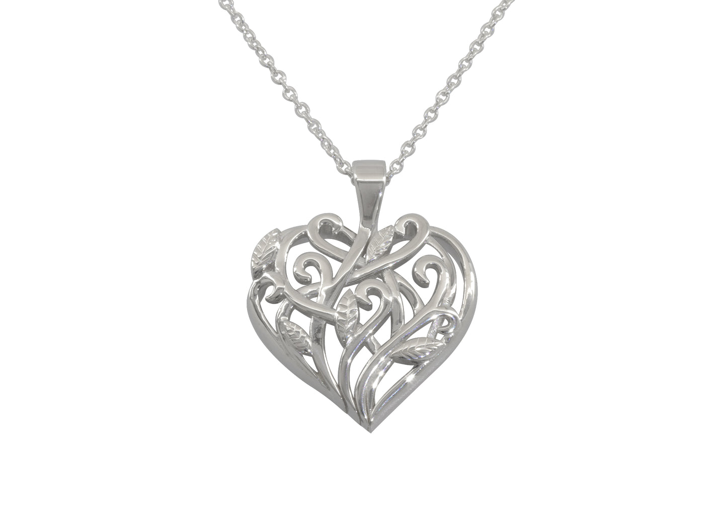 Elvish Heart Pendant, White Gold with Yellow Gold Leaves