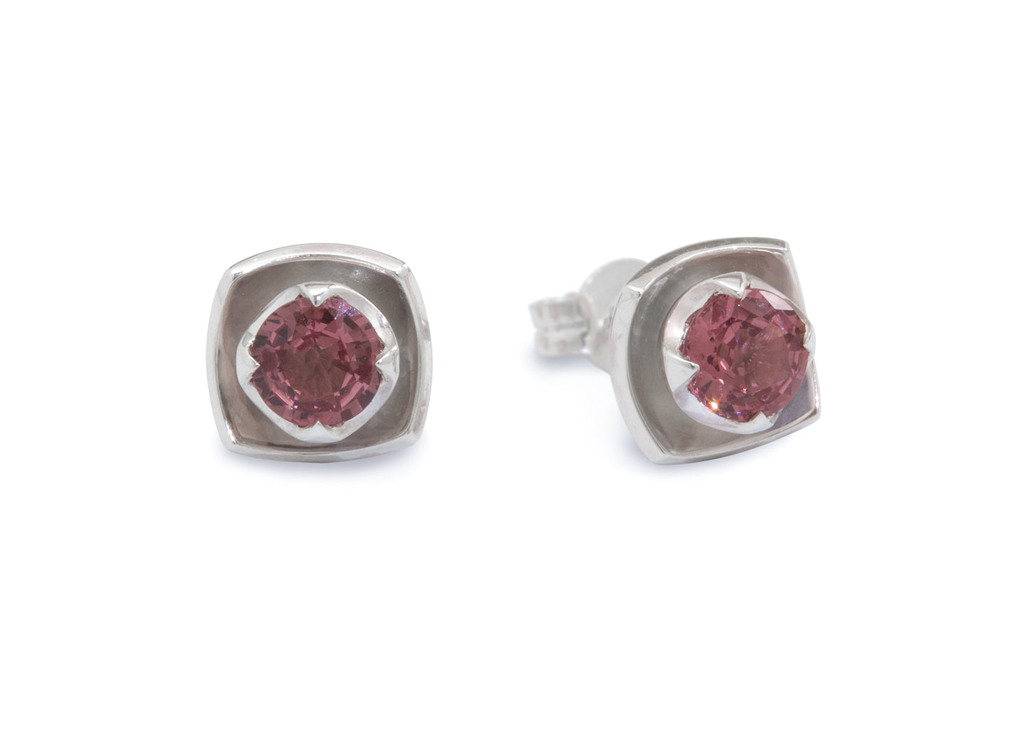 Sterling Silver flower studs set with a glistening coloured gemstone of your choice. This design was inspired by our Legacy Flower Ring.