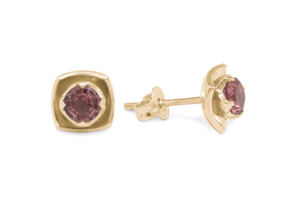 Gold flower studs set with a glistening coloured gemstone of your choice. This design was inspired by our Legacy Flower Ring.