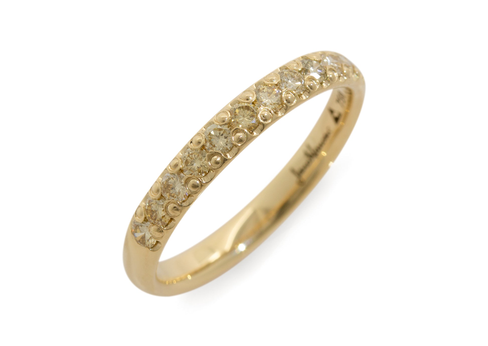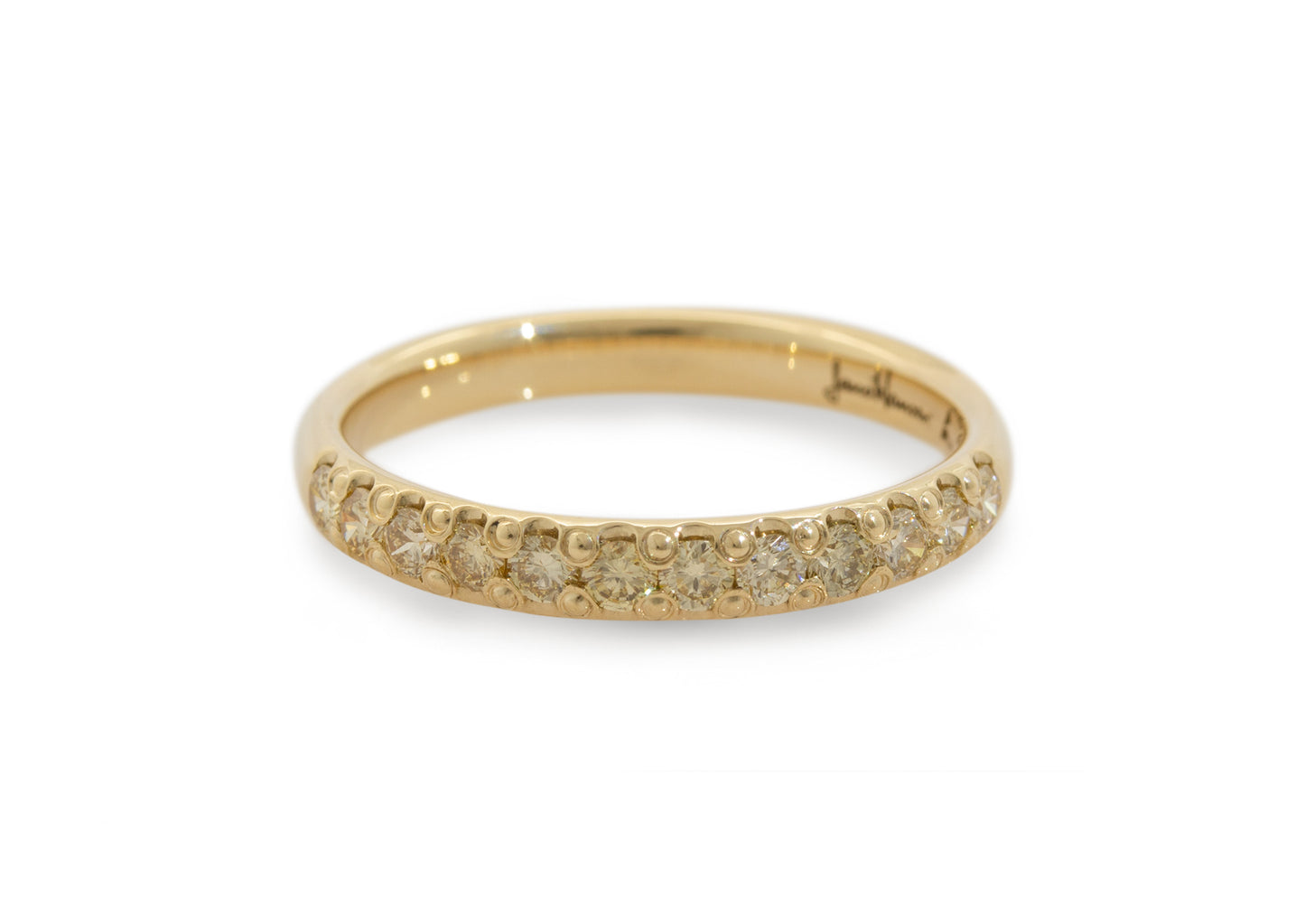 Petite replica ring with twelve golden diamonds pave set on the band.