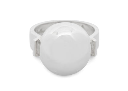 Sterling silver ring with sculpted shoulders and hollow domed top.