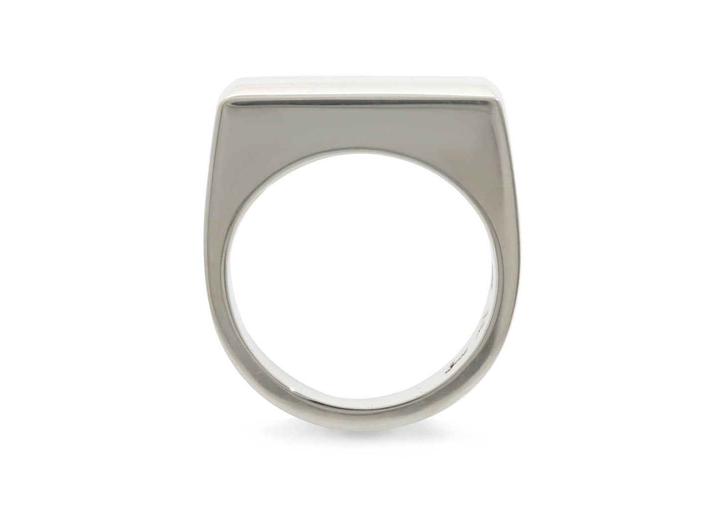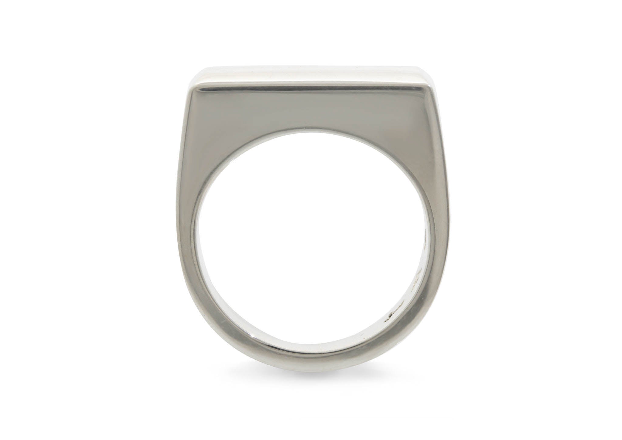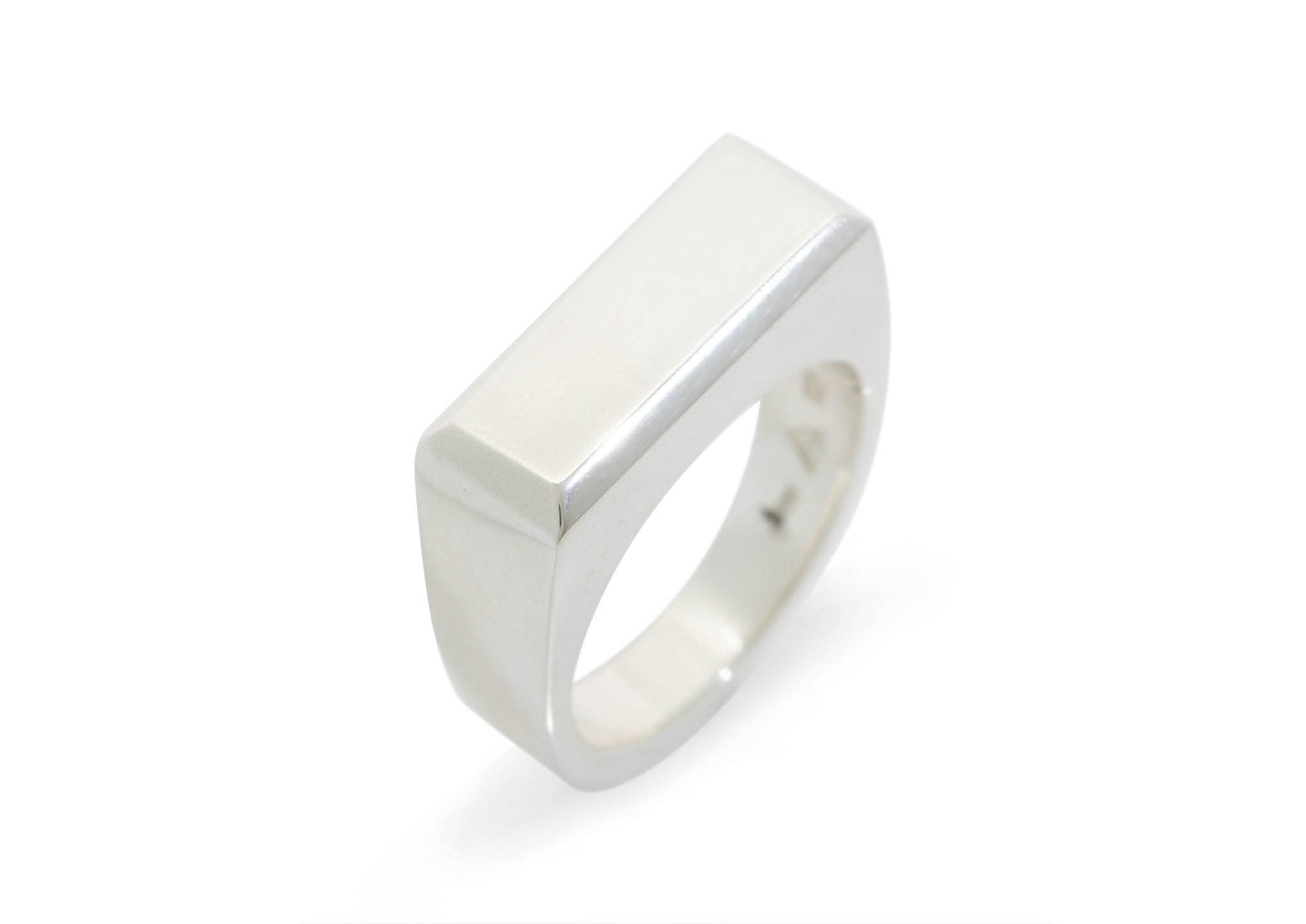 Sterling silver ring with rectangular beveled edge top.