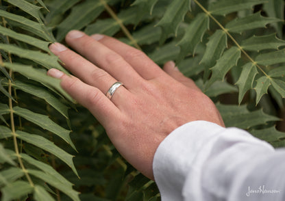 This 'little One' measures just over 5mm wide and is about 2mm thick through the band. Making it a perfect Elvish themed wedding band for the smaller hand.