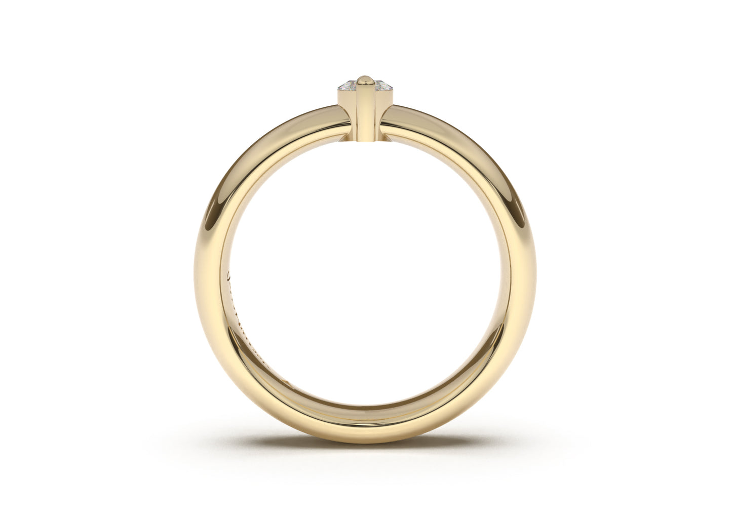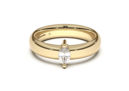 Elegant traditional styling, fashioned in yellow gold, this ring features a two prong setting that showcases the brilliance of the marquise diamond.