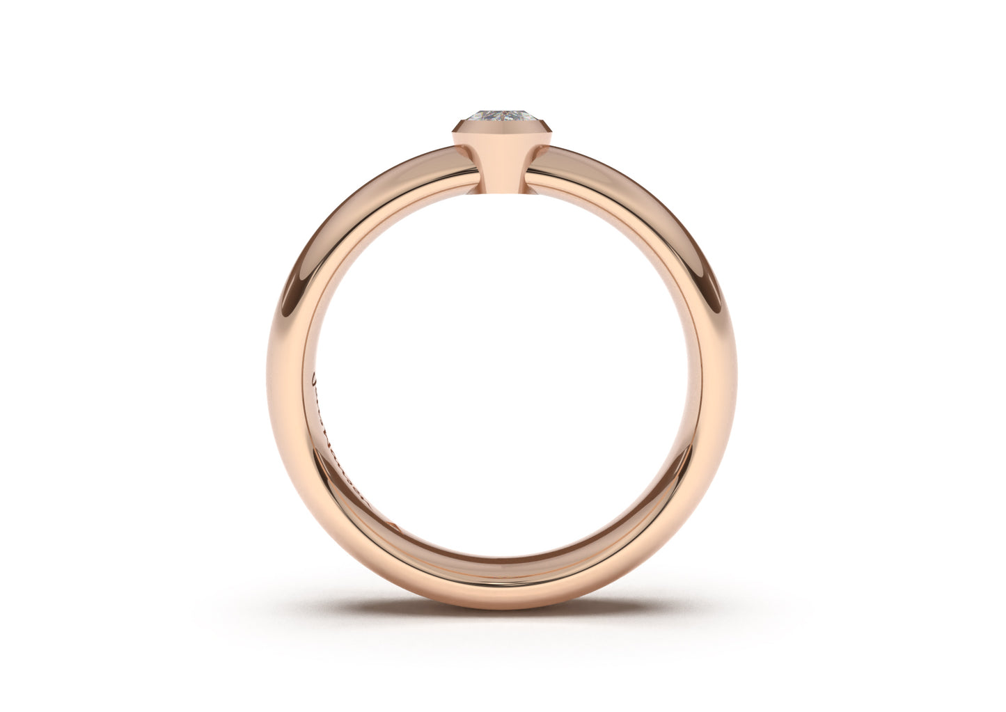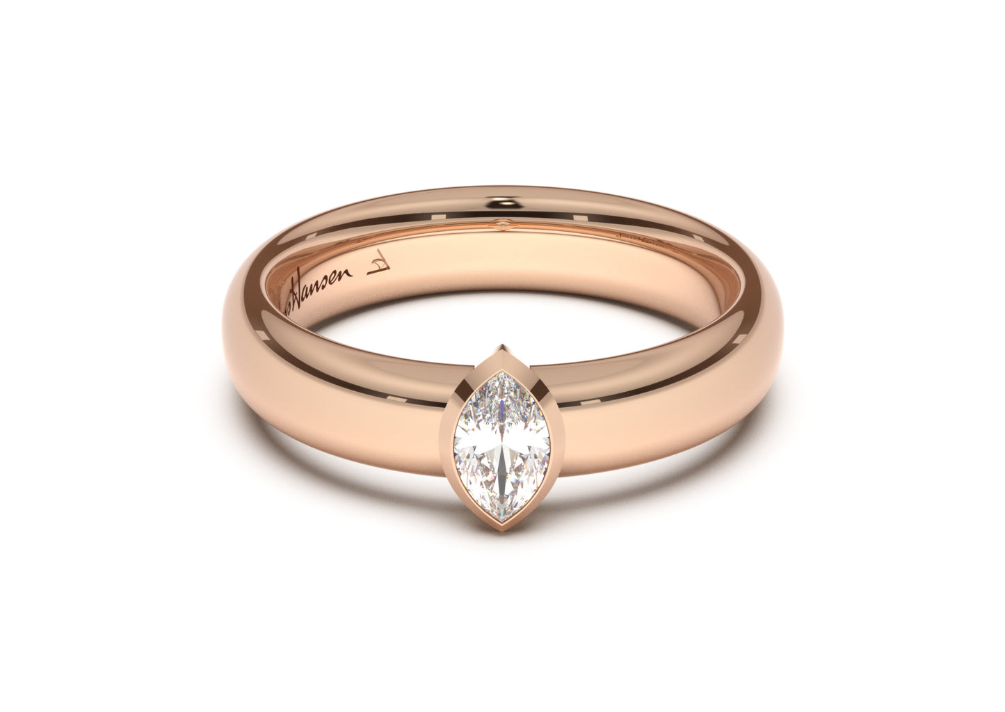 Elegant contemporary styling, fashioned in red gold, this ring features a tapered bezel setting that showcases the brilliance of the marquise diamond.