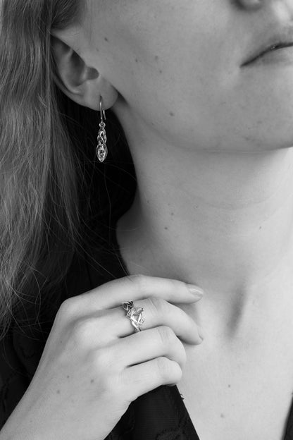 Spoil yourself or your beloved with a pair of stunning Elven-inspired earrings. These earrings feature your choice of marquise faceted gemstones.