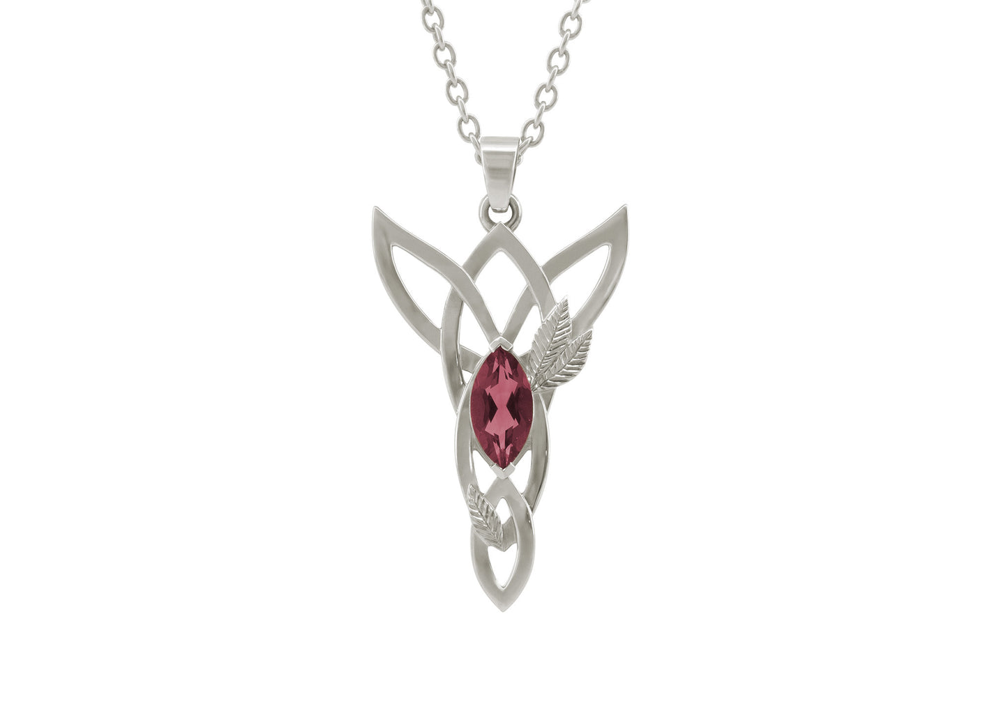 Marquise Gemstone Elvish Woodland Pendant, White Gold & Platinum