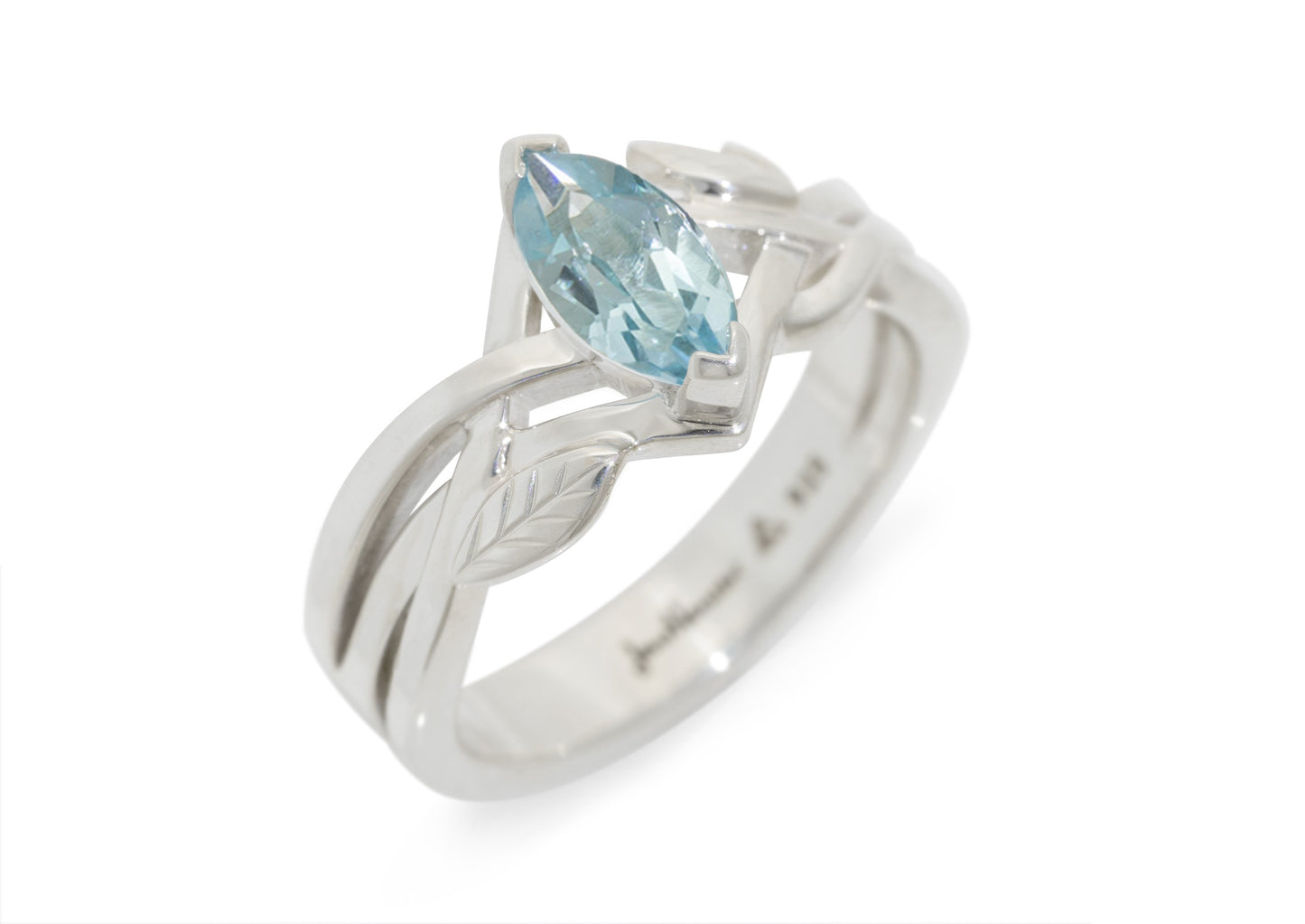 Marquise Gemstone Elvish Woodland Ring, White Gold & Platinum