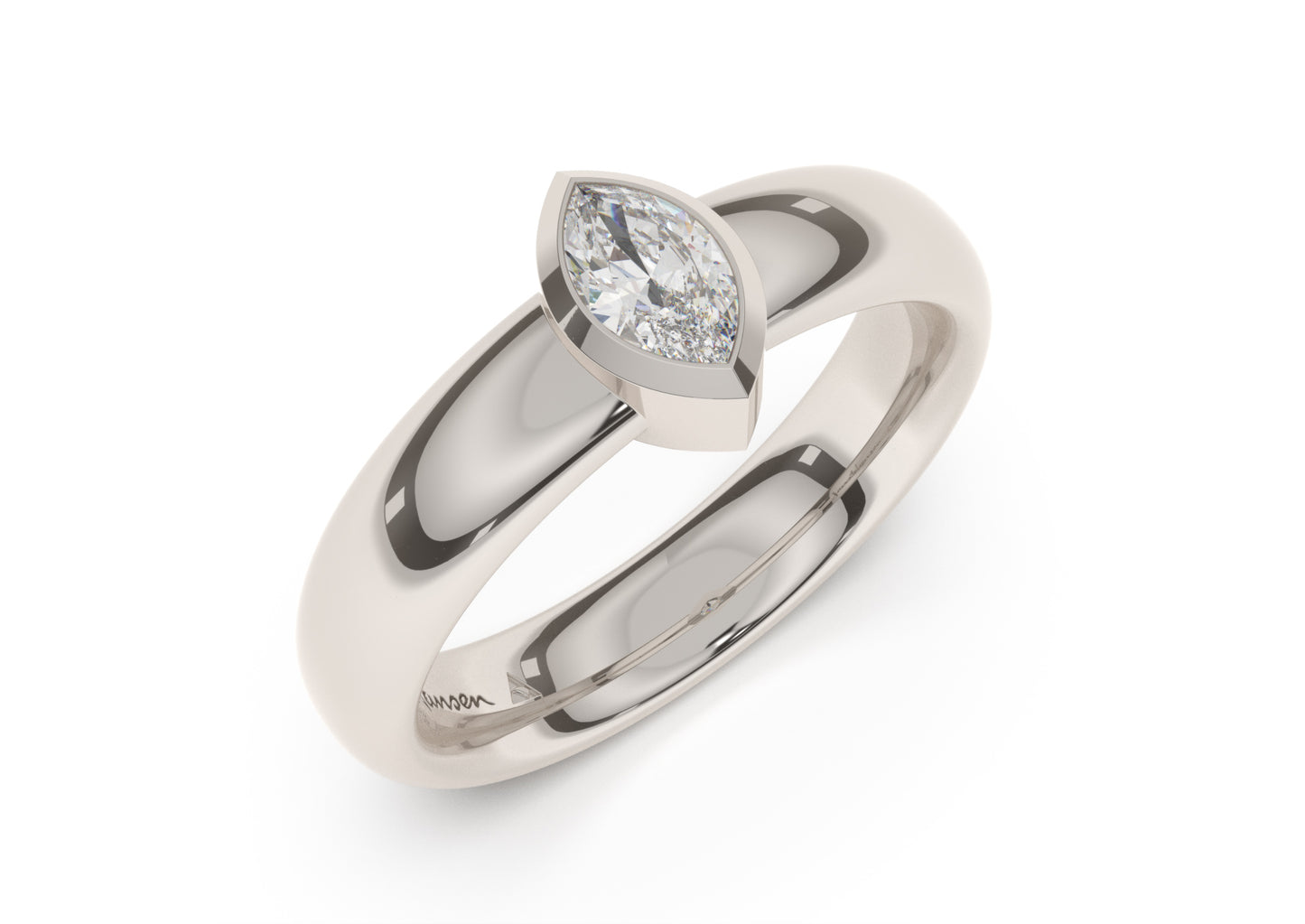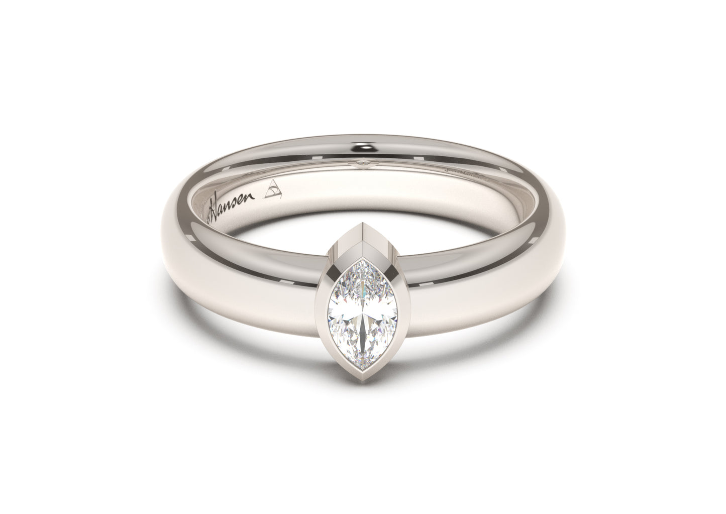 Stunning modern styling, fashioned in white gold or platinum, this ring features a straight bezel setting that showcases the brilliance of the marquise diamond.