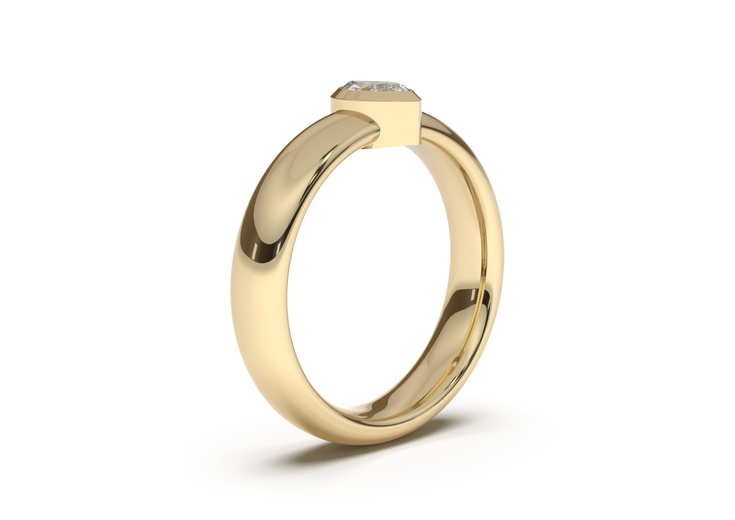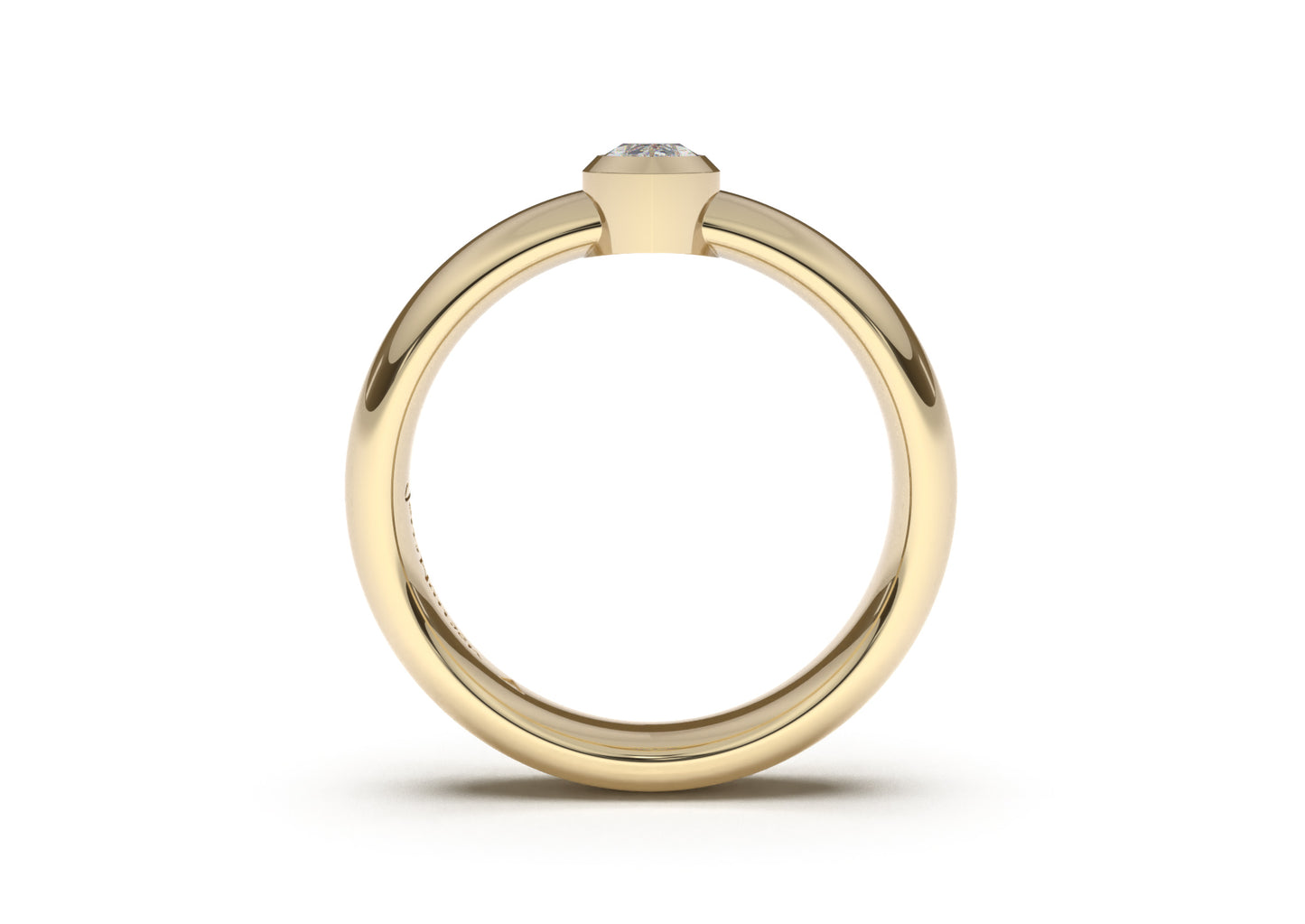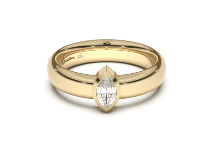 Stunning modern styling, fashioned in yellow gold, this ring features a straight bezel setting that showcases the brilliance of the marquise diamond.
