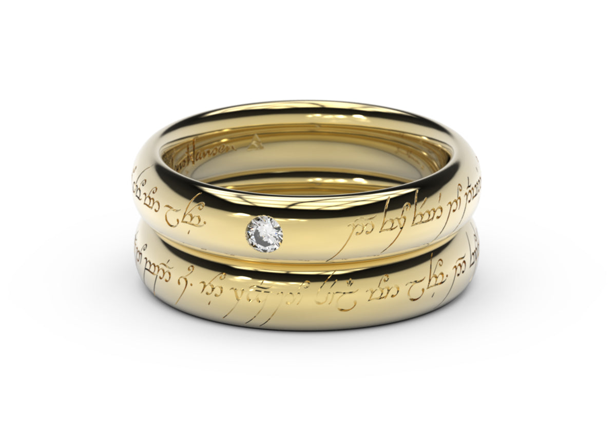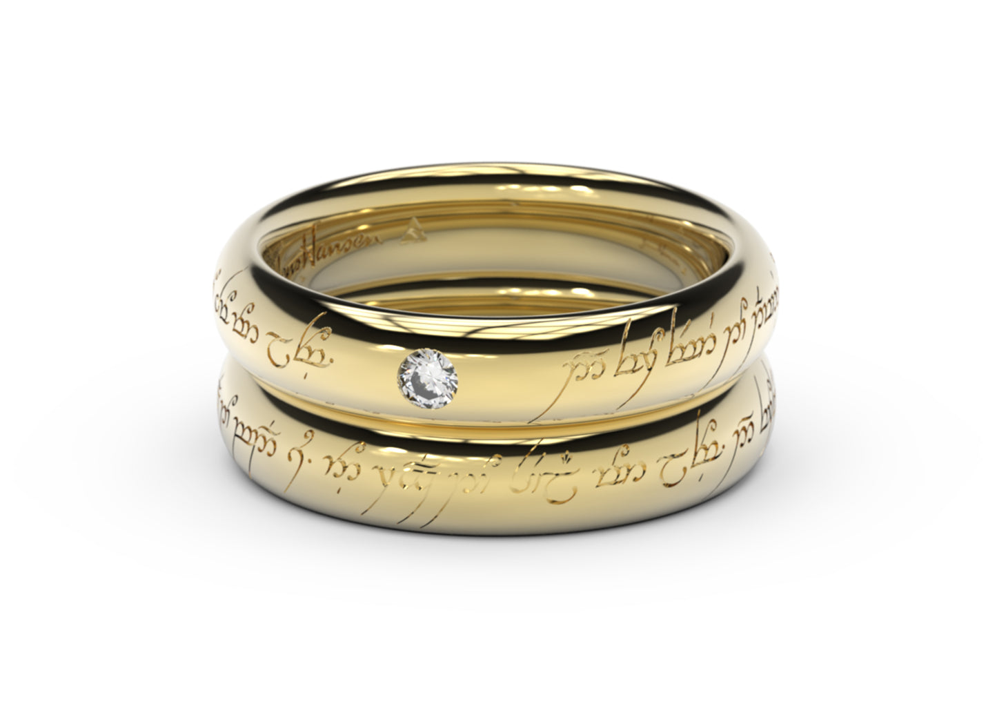 The engraving is often what truly gives a ring its meaning. You can choose your own Elvish (or any other language) engraving for both inside and outside the ring.The Elvish Love Poem fits perfectly on the outside of the ring:One ring to show our love,One ring to bind us,One ring to seal our love,And forever to entwine us.