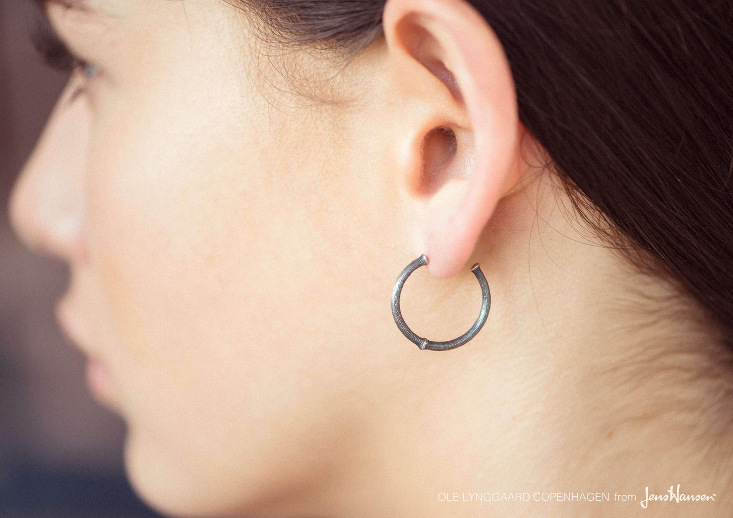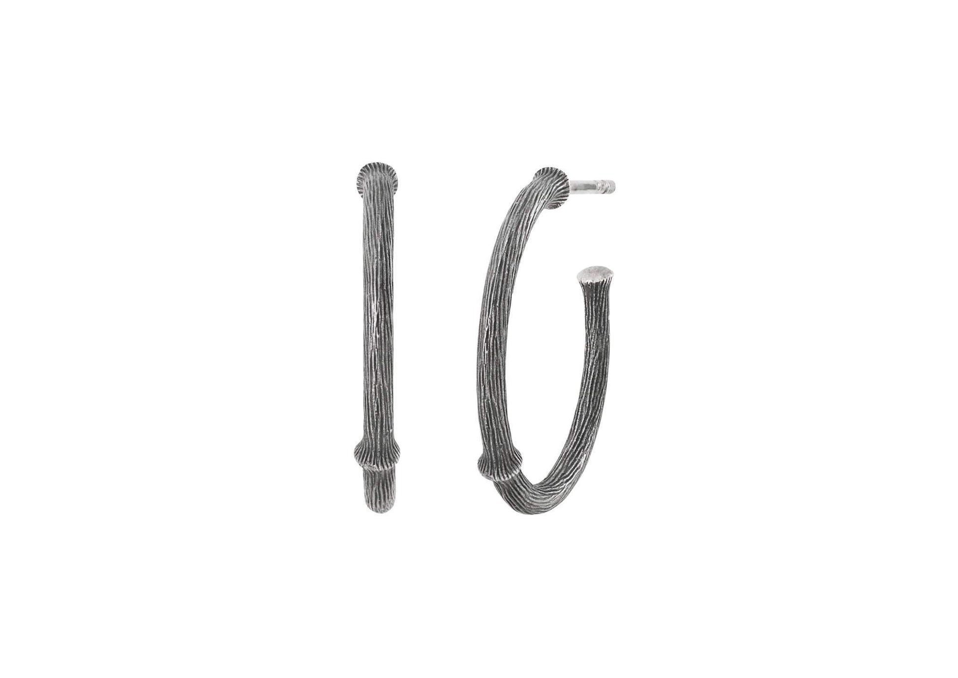 Nature medium Creol Sterling Silver Earrings, 21mm, Oxidized.