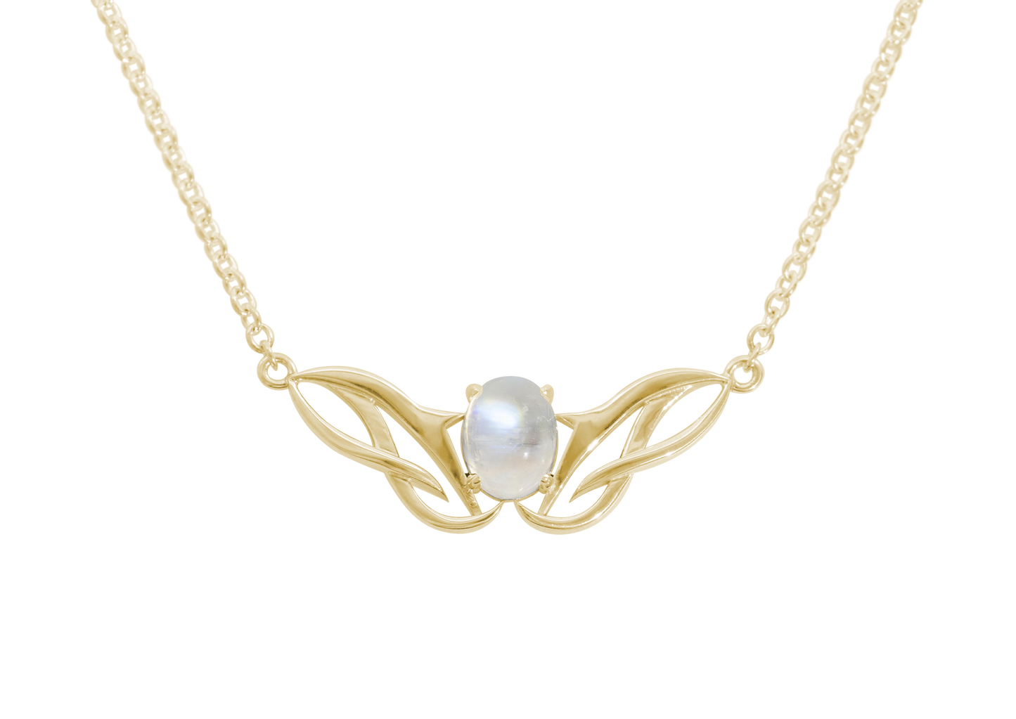 Oval Cabochon Gemstone Elvish Woodland Pendant, Yellow Gold