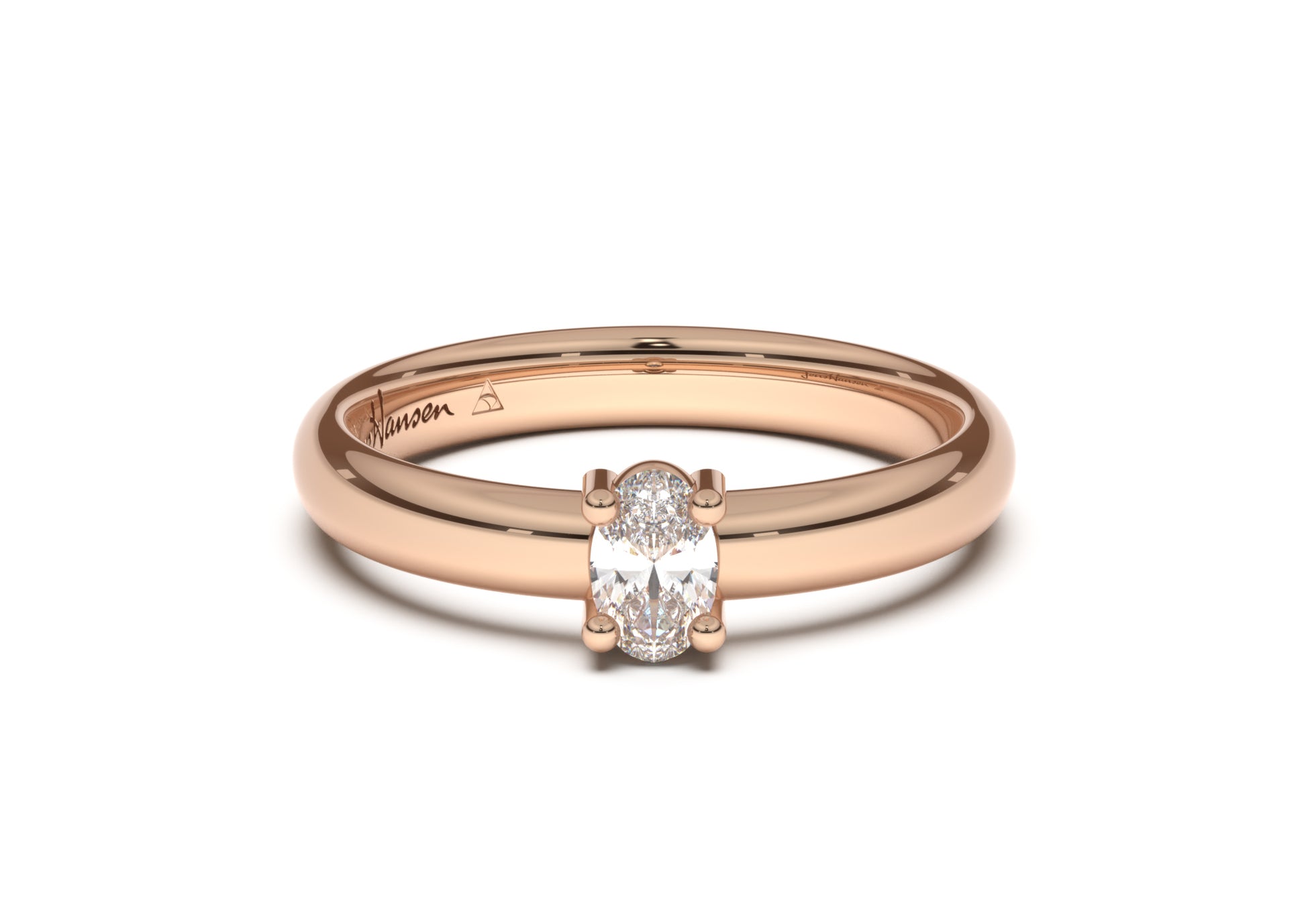 Oval Contemporary Slim Engagement Ring, Red Gold