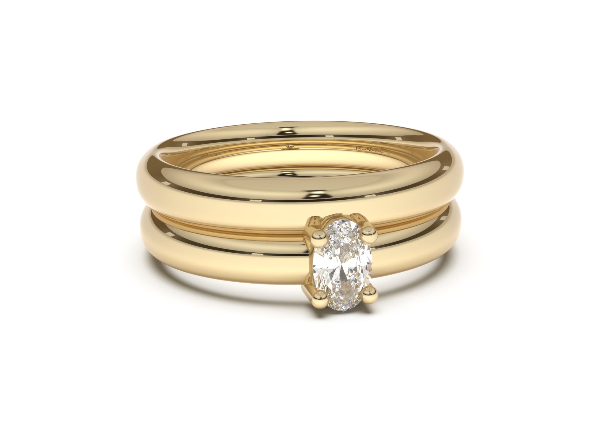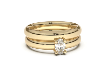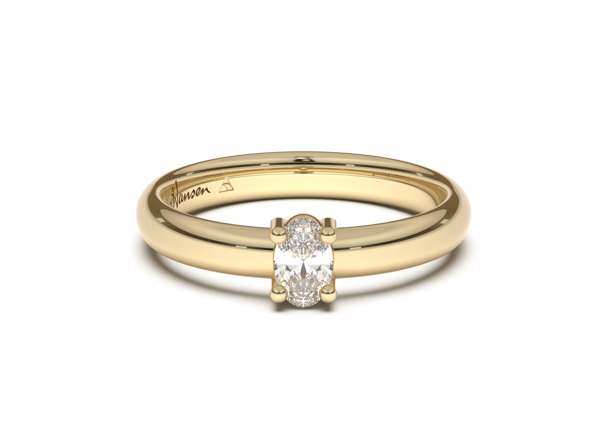 Oval Contemporary Slim Engagement Ring, Yellow Gold