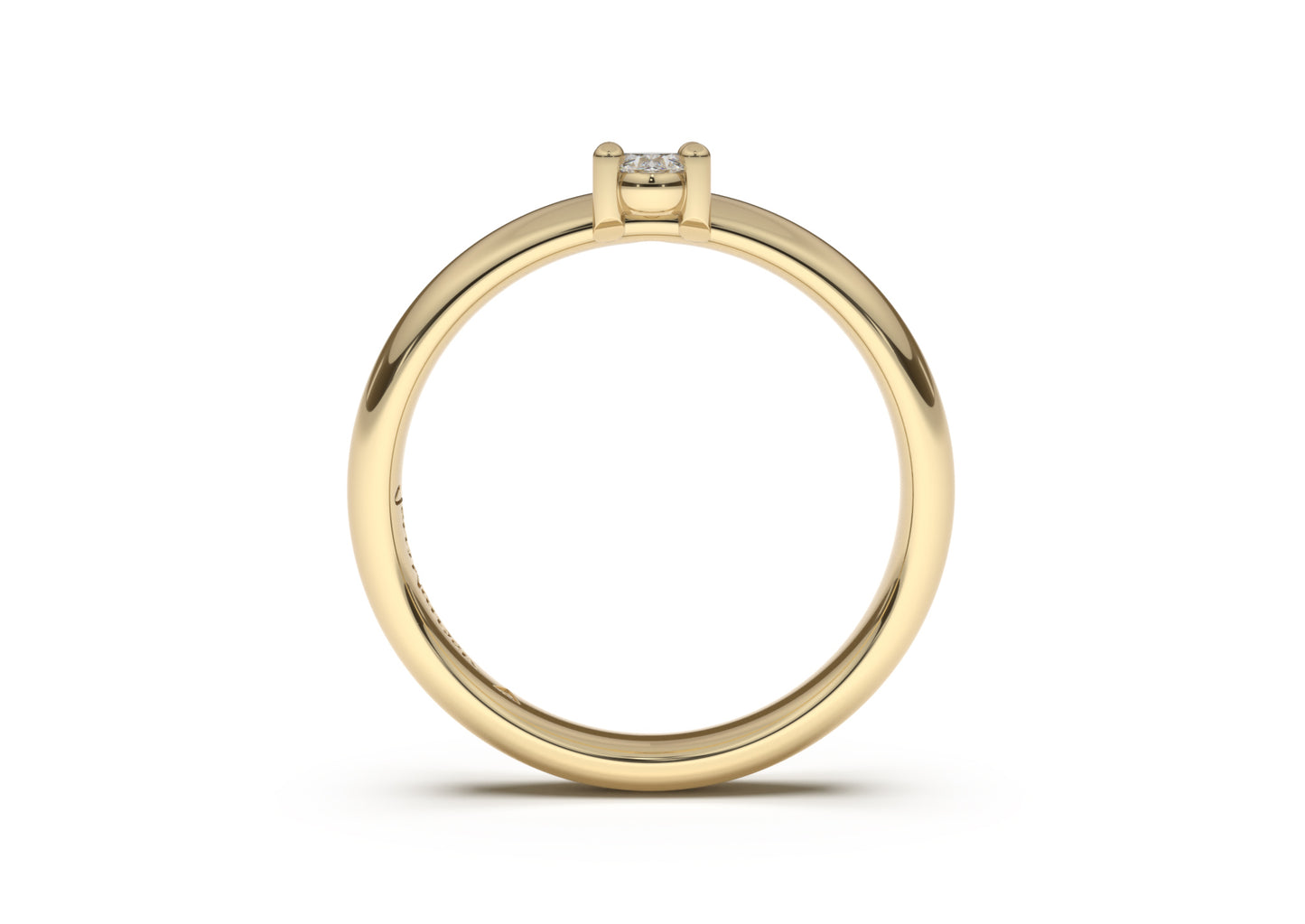 Elegant contemporary styling, fashioned in yellow gold, this ring features a four prong setting that showcases the brilliance of the diamond.