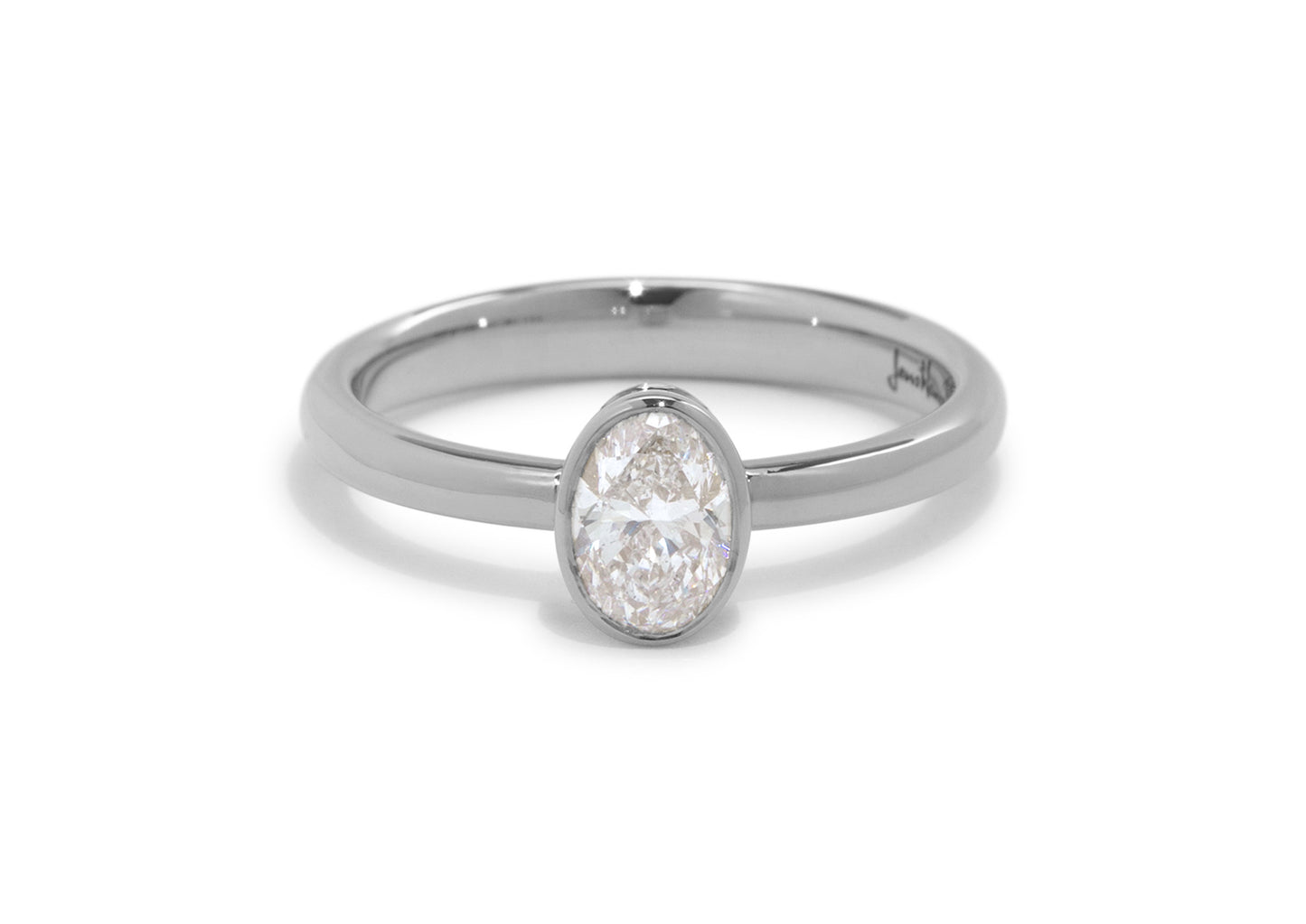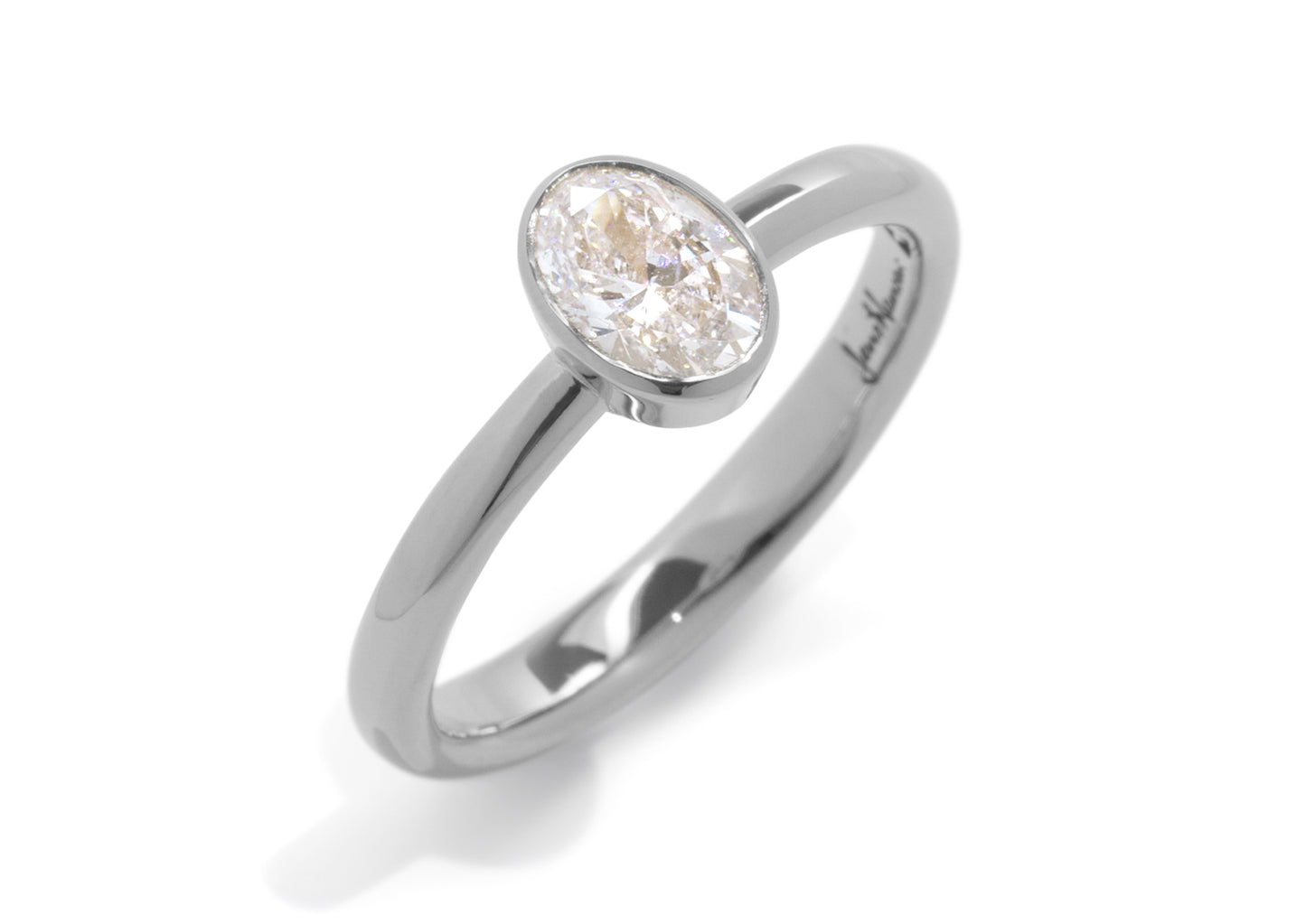Oval Diamond Bezel Engagement Ring, White Gold & Platinum