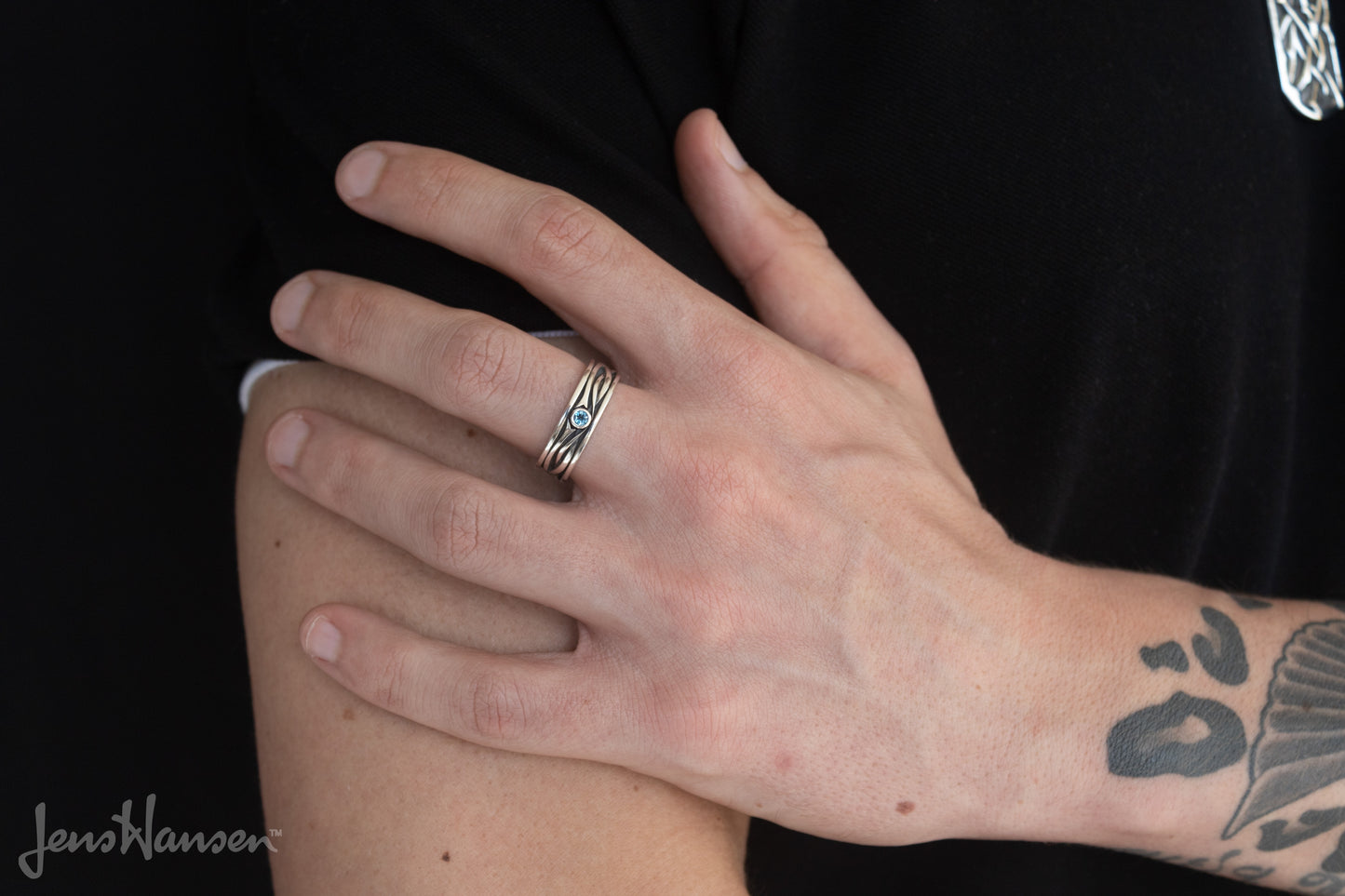 Patterned Gemstone Elvish Woodland Ring, Sterling Silver