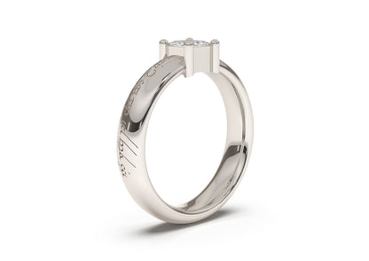 Engraving, optional: Choose None, Inside, Outside or Both Sides of the ring. For outside engraving two phrases of about 25 characters is recommended (we position the diamond between the two phrases)