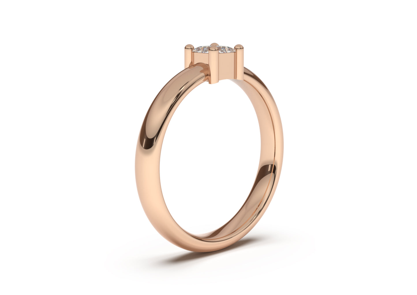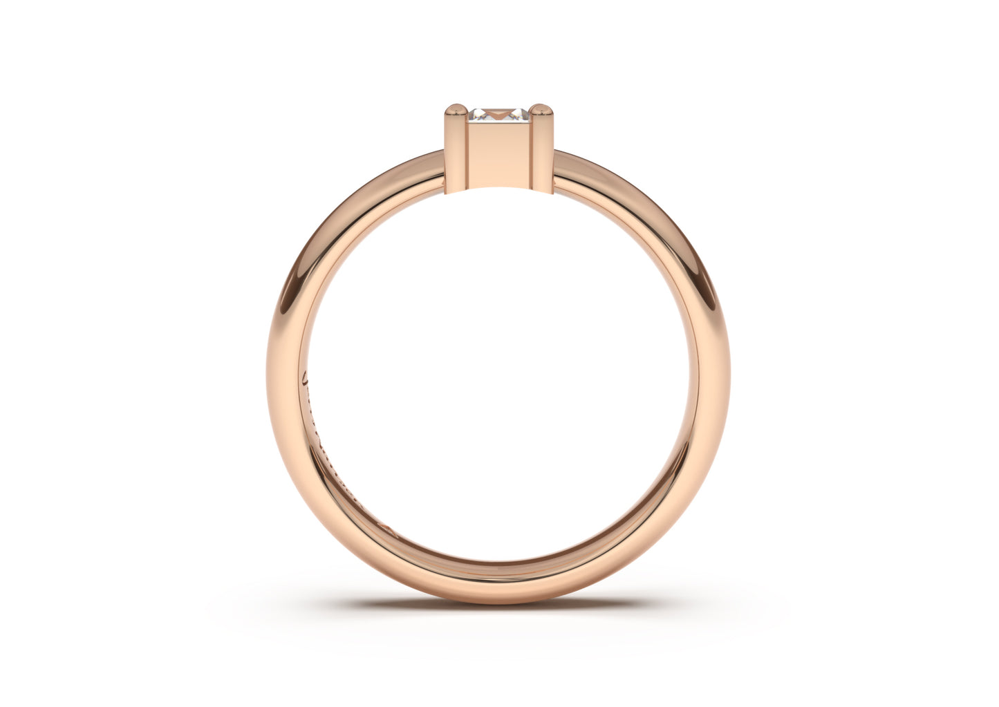 Elegant traditional styling, fashioned in red gold, this ring features a four prong setting that showcases the brilliance of the princess cut diamond.