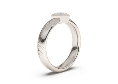 Engraving, optional: Choose None, Inside, Outside or Both Sides of the ring. For outside engraving two phrases of about 25 characters is recommended (we position the diamond between the two phrases)