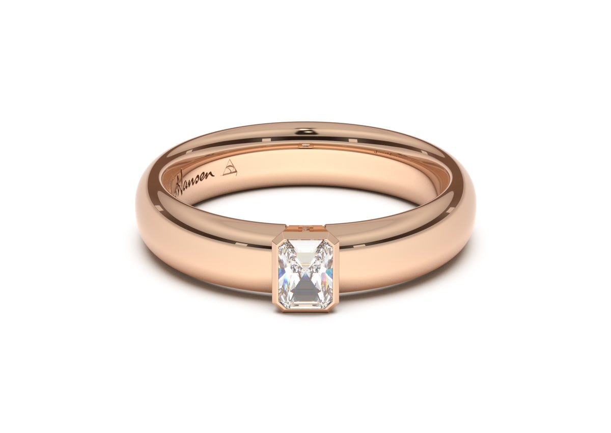 Emerald Cut Elegant Engagement Ring, Red Gold