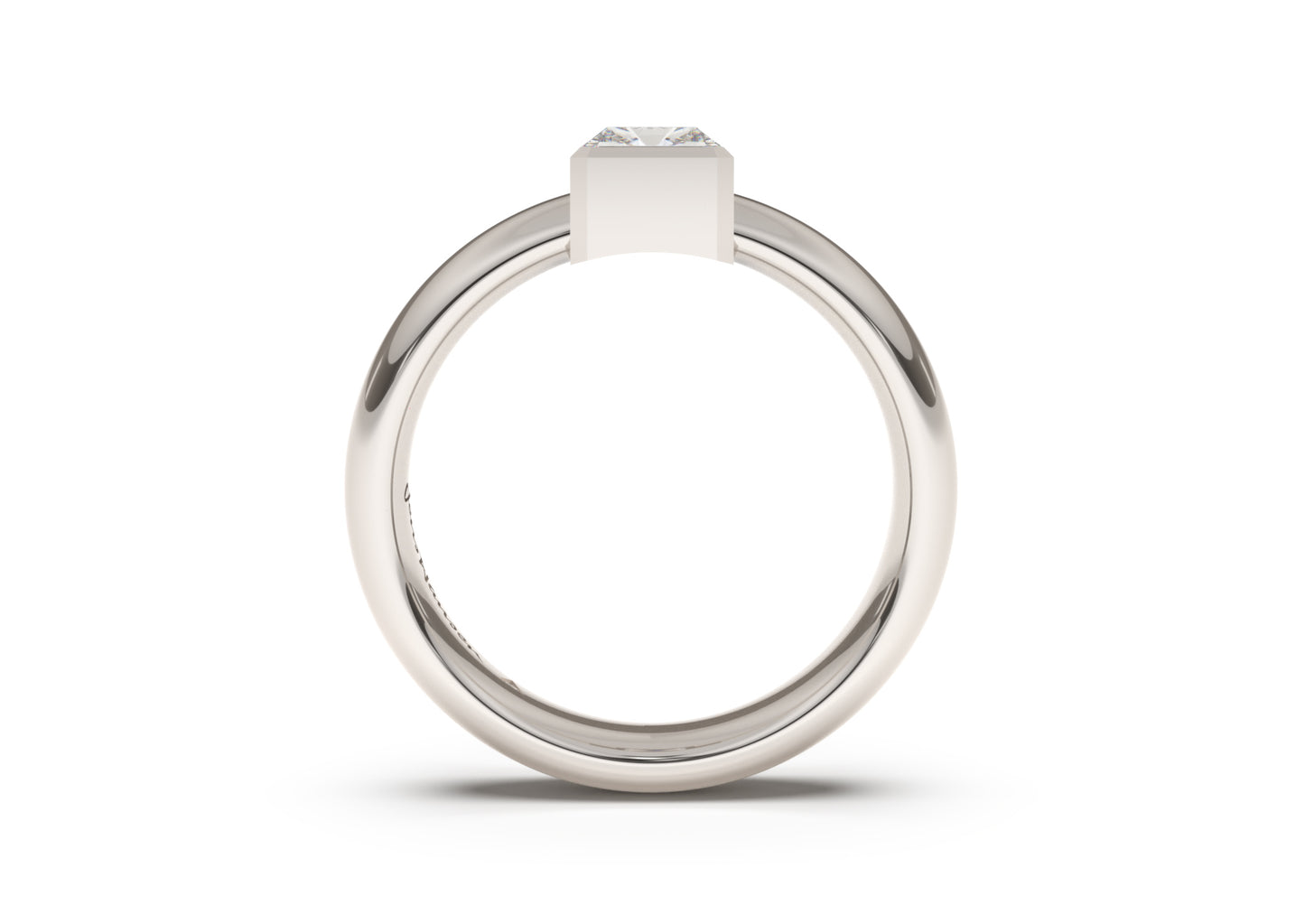 Engraving, optional: Choose None, Inside, Outside or Both Sides of the ring. For outside engraving two phrases of about 25 characters is recommended (we position the diamond between the two phrases)