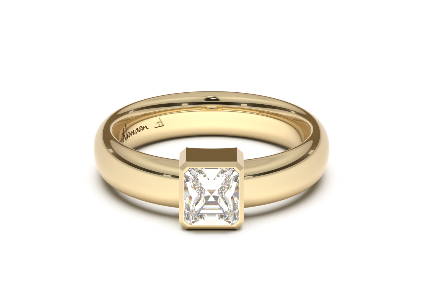 Emerald Cut Modern Engagement Ring, Yellow Gold
