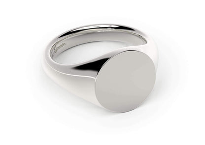 Round shaped Signet Ring, available in 9ct, 14ct, 18ct White Gold & Platinum