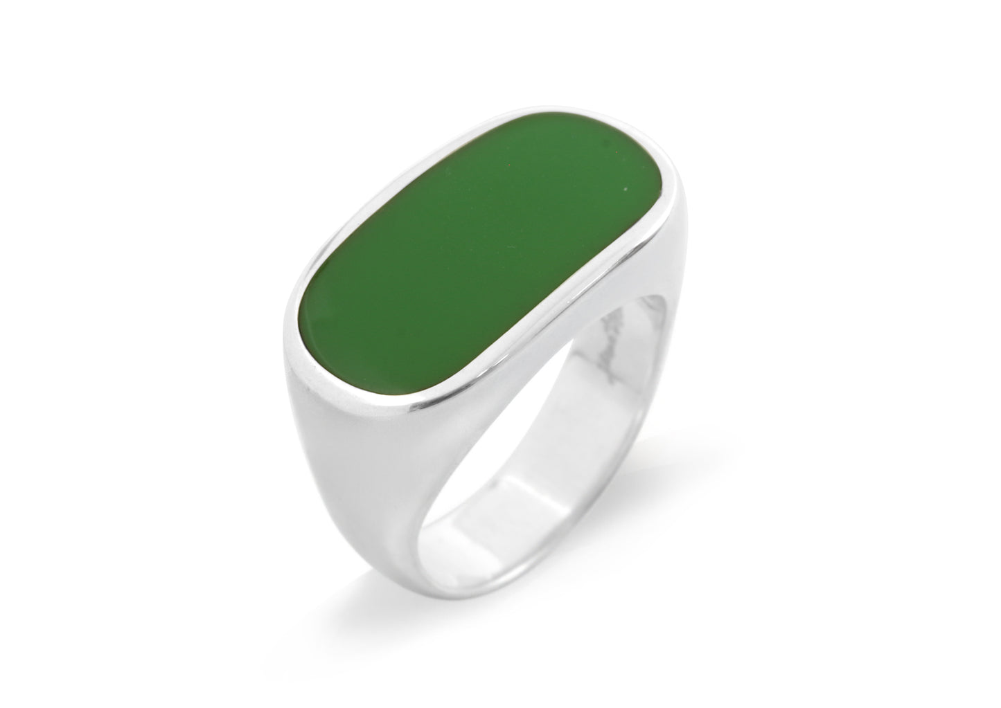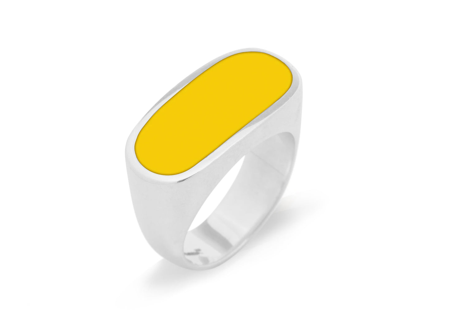 Chic and stylish, these ultra-modern resin rings are smooth and sophisticated. Your chosen shade of resin is inlaid into a silver signet-style ring in a rich but mellow oblong shape. Worn as an in vogue summer piece, or as a warm winter accent, this is a ring sure to please.