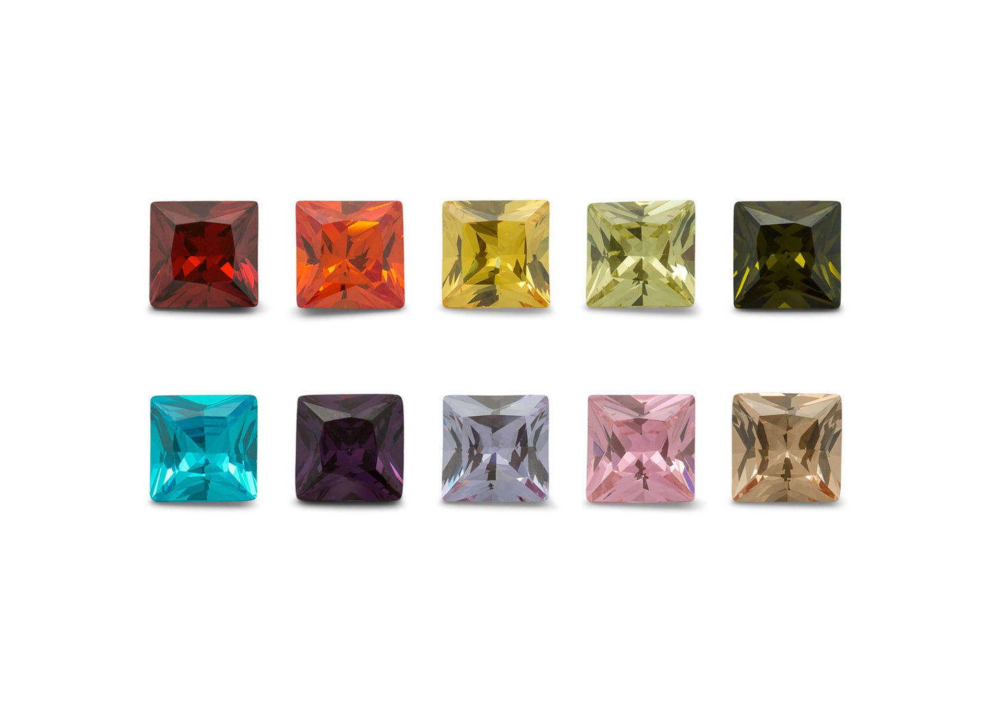 - Stone shape/cut: 6mm or 8mm Square faceted cut.
