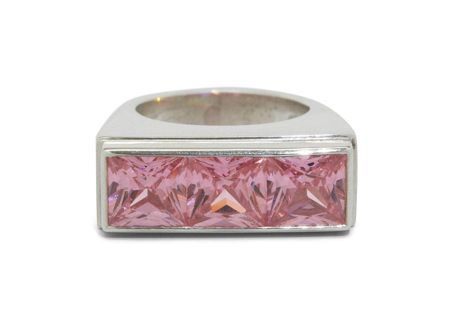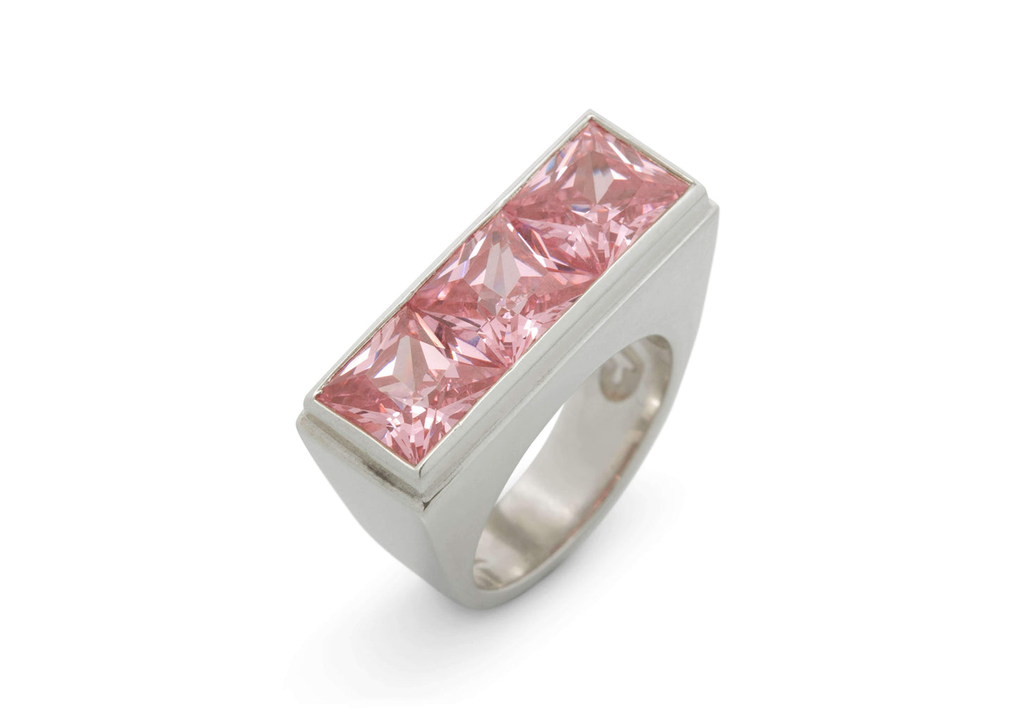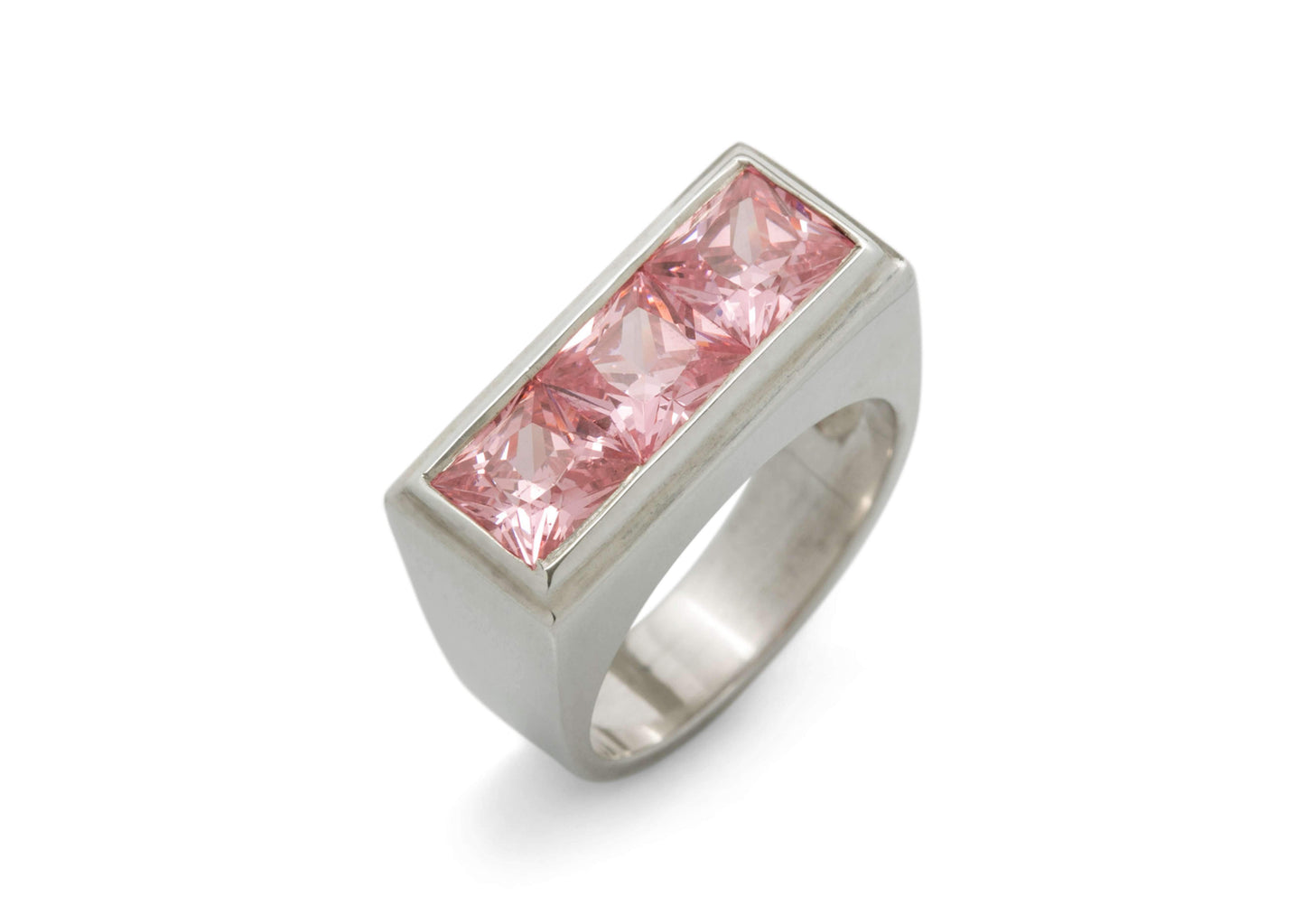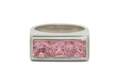 Sterling Silver Ring channel set with three Square Faceted Cubic Zirconias.
